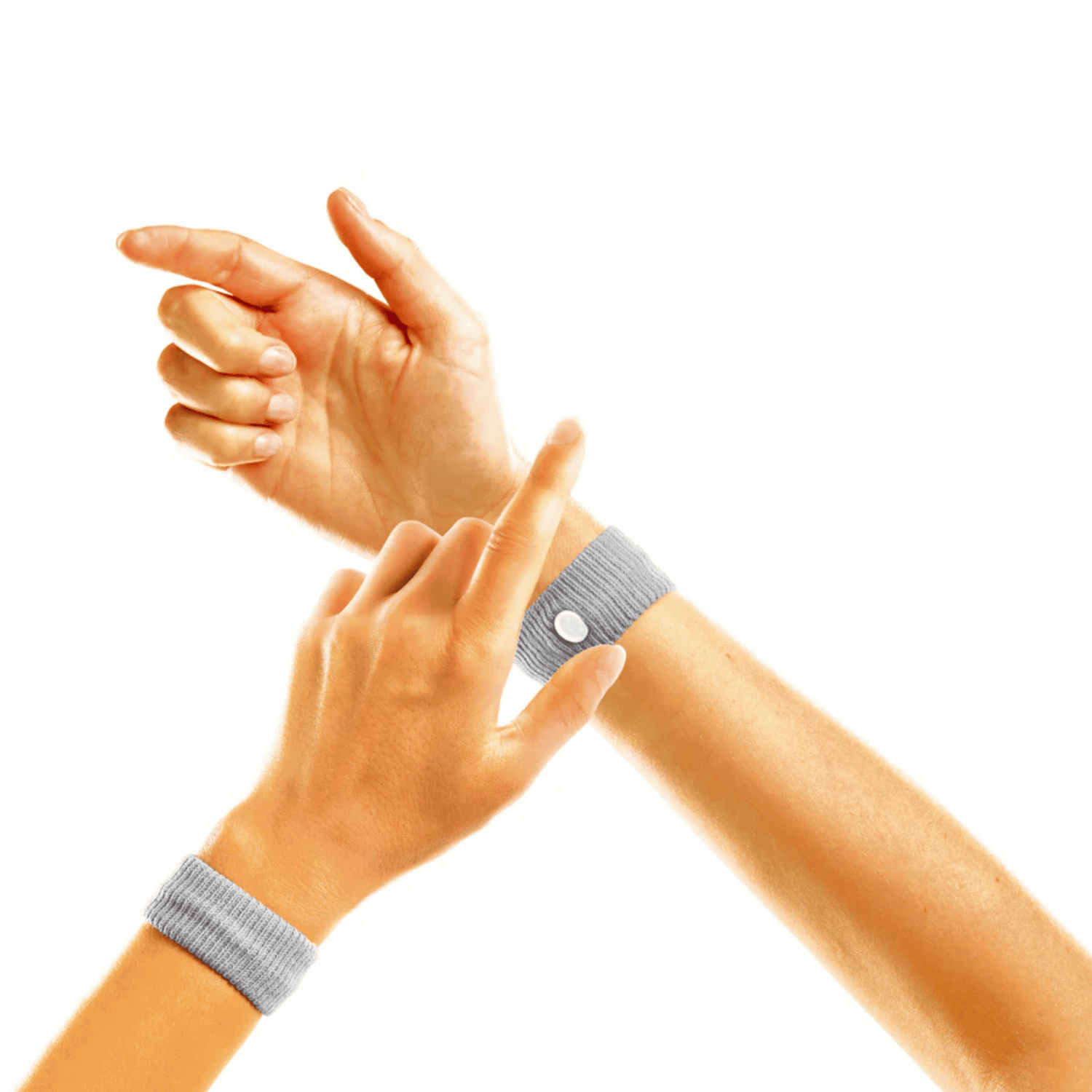 Place on wrists when you feel nauseous with the white knobs on the inside of the wrist