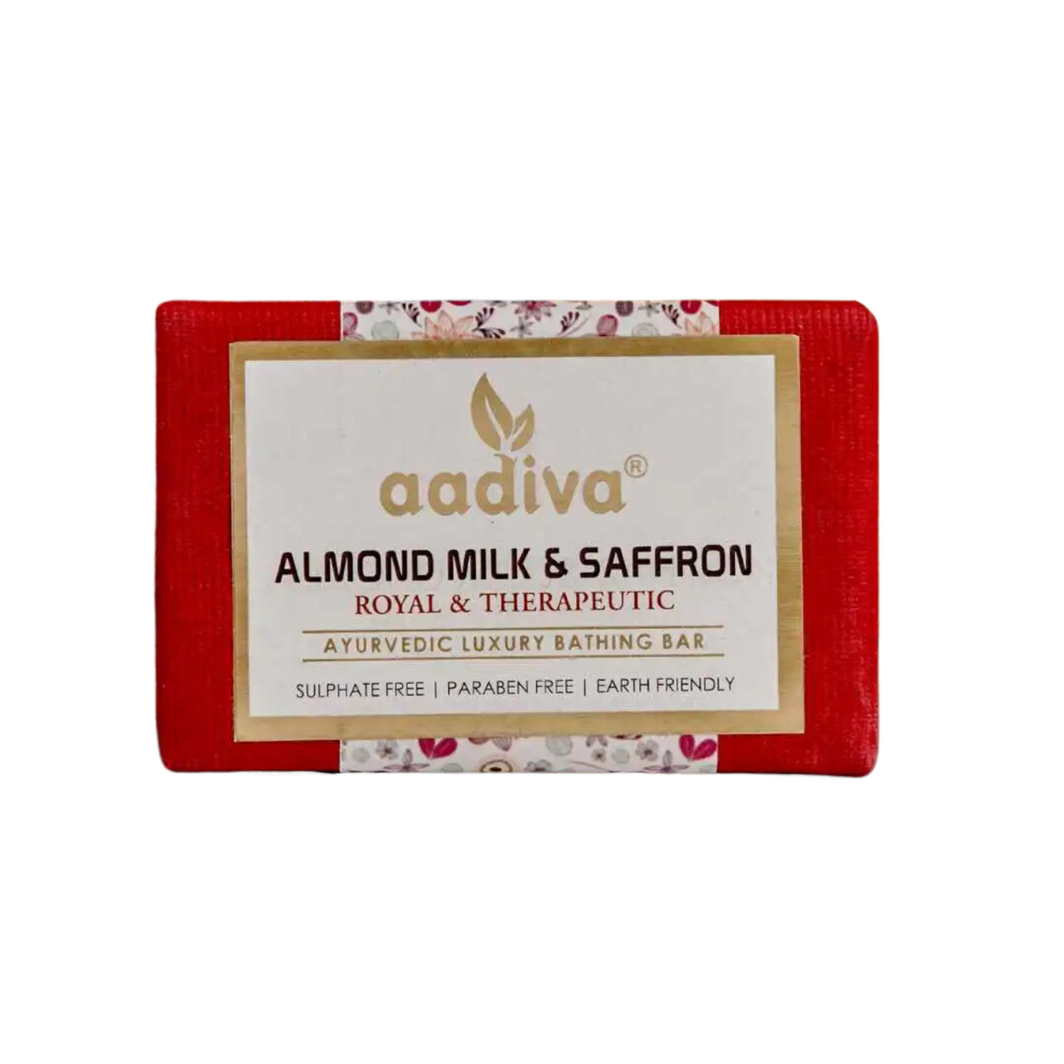 Aadiva’s Almond Milk and Saffron Soap is a truly royal bathing bar. Based on an ancient recipe, this bar is enriched with the milk of Almonds and Kashmiri Saffron to moisturize and nourish delicate skin. Saffron is therapeutic and unleashes its calming effect in combination with Almond milk.