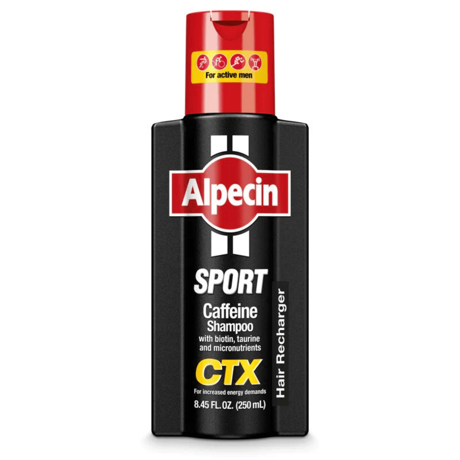 Sports and high-intensity exercise draws energy from the hair. Thanks to its special performing ingredient combination – caffeine, taurine and the micronutrients biotin, zinc, magnesium and calcium – Alpecin Sport Caffeine Shampoo CTX counteracts this effect and recharges hair with energy to keep it strong, healthy and energized.