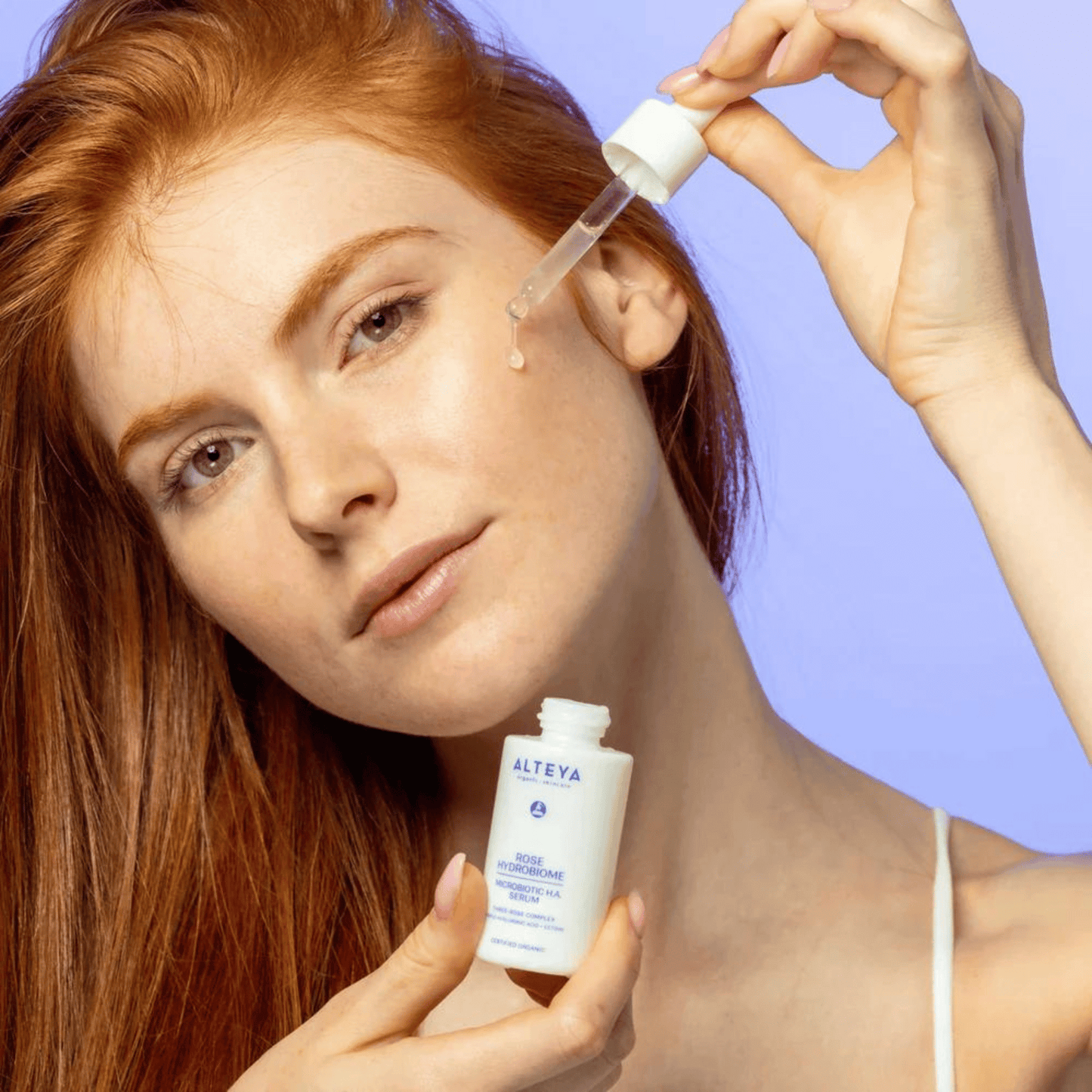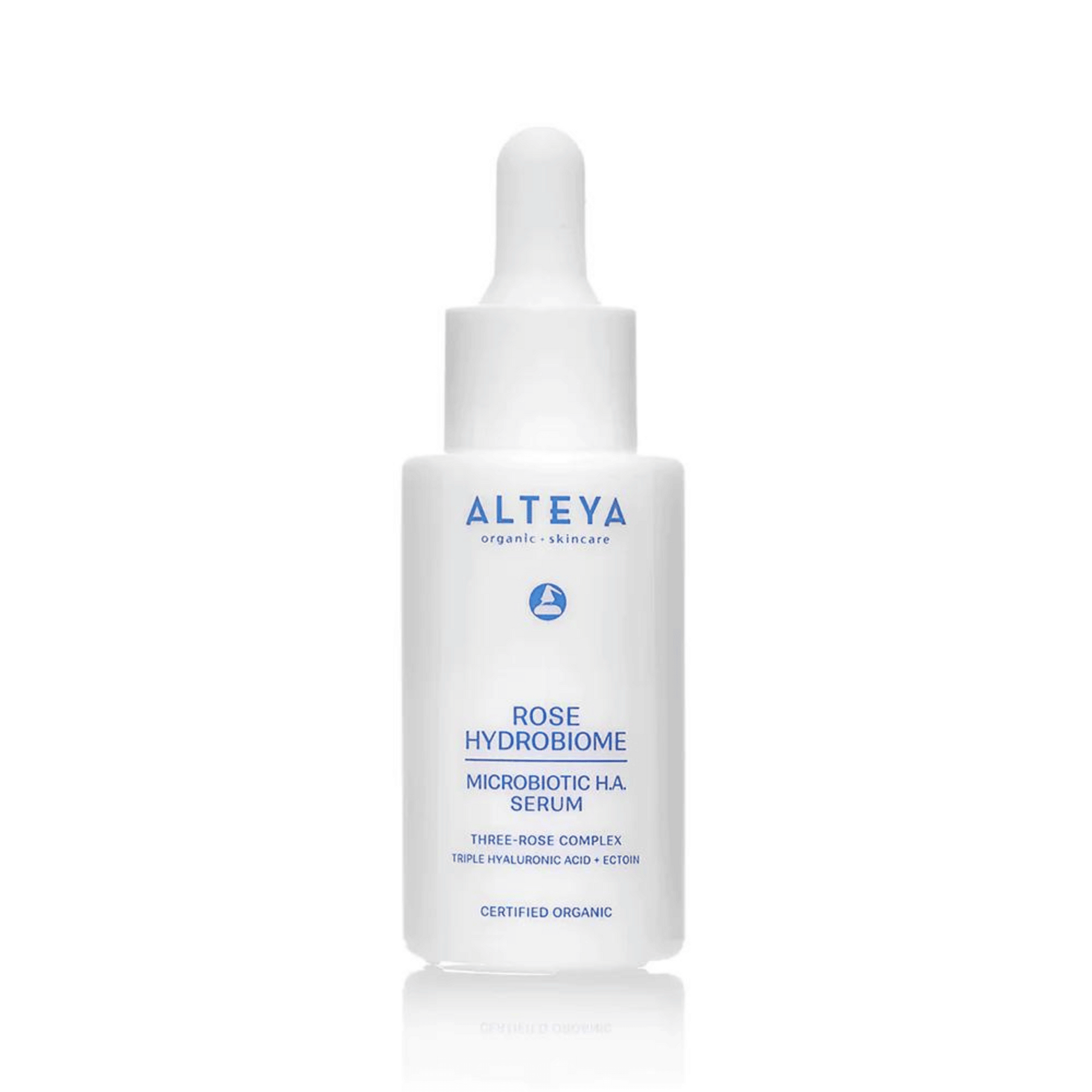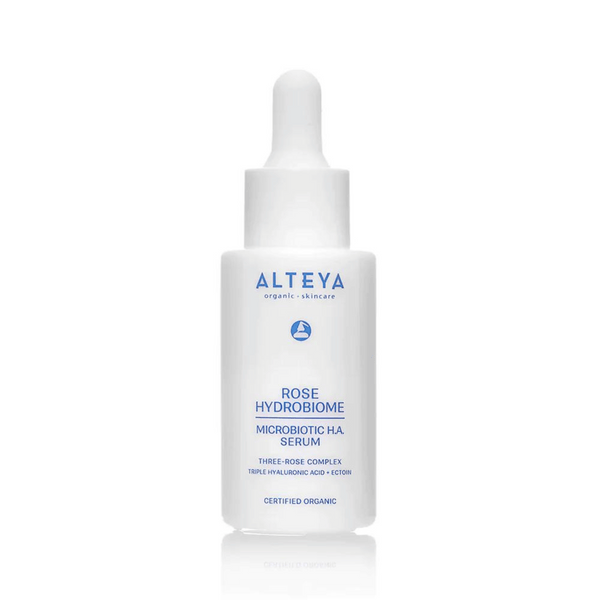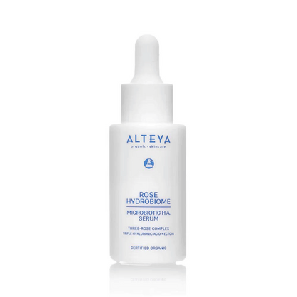 Alteya's Microbiotic H.A. Serum is formulated to hydrate skin and strengthen its moisture barrier. It contains a synergetic blend of three molecular weights of Hyaluronic Acid to fortify and plump skin and reduce the appearance of lines and wrinkles. The Three-Rose Complex soothes skin, evens out complexion, and promotes radiance. The ultra-light formula is enriched with skin reviving Ectoin and balancing Prebiotics for super glowy, dewy, and radiant, healthy-looking skin. Formulated in Alteya's innovative cosmetic lab. Made with proprietary Three-Rose Complex based on potent extracts of organic Rosa Damascena, Rosa Alba and Rosa Centifolia obtained from Alteya's organic rose garden.