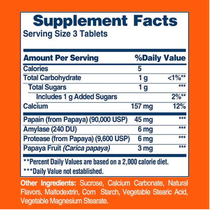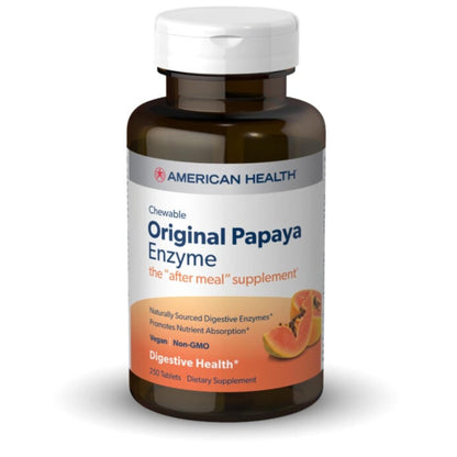 American Health's famous blend is the perfect “after meal” supplement to help support and maintain daily digestive health. They combine the finest quality ingredient from freshly ripened papaya and naturally sourced enzymes including papain, amylase and protease, which aid in the digestion of proteins and carbohydrates, while encouraging their absorption. Take this delicious, naturally sourced enzyme supplement regularly to promote gastrointestinal wellness.