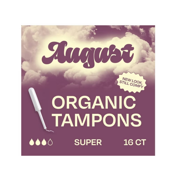 The August Super Tampons are ideal for heavier flow days. They have a smooth tip, long BPA-free applicators made for easier insertion. They absorb 9-12 mL for heavier flow and are made from 100% organic cotton. Plus they're hypoallergenic for your comfort and safety. They feature a BPA-free long applicator with a smooth tip to make insertion a breeze. The tampon opens axially like a pair of wings to better fit your body for maximum comfort and absorbency!