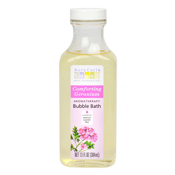 Take a moment to unwind with a bubble bath that is rich in pure essential oils. Aura Cacia's Tranquil Chamomile Bubble Bath contains a comforting blend of pure geranium, lavender, and rose essential oils. Creates a generous amount of bubbles and leaves your skin moisturized.Does not contain synthetic color stabilizers. Not tested on animals. Paraben Free.