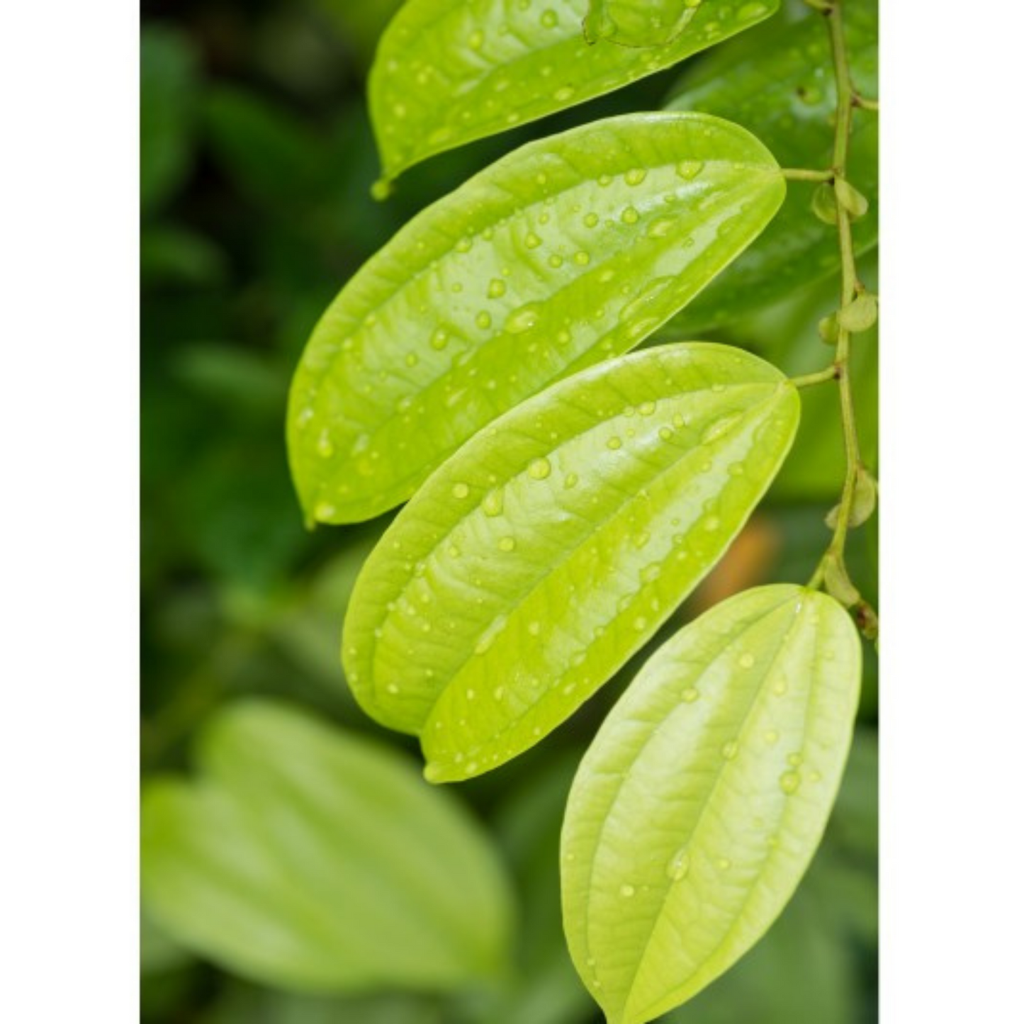 Cinnamon Leaf Essential Oil is derived from the leaves of an evergreen tree, native to Sri Lanka. Three distinct oils are produced by C. zeylanicum: bark, leaf, and root. The trees may reach approximately 60 ft in height. In leaf cultivation, the continual removal of shoots by cropping the young tree to almost ground level results in the formation of a dense bush with ample leaves and shoots. After trimming and pruning, the leaves left behind from the cutting of the stems are usually allowed to dry for a few days before distillation. The leaves are then collected and laid in piles along two ropes. These ropes are used to roll the leaves into bundles which are carried out of the plantation by workers on foot. The bundles are transported to the still, where they are placed into the vats for distillation. This regular maintenance provides the basis of raw material to produce Cinnamon Leaf oil. Cinnamon Leaf Oil is pale-yellow to dark yellow. It has a gentler effect than Cinnamon Bark oil, due to a higher content of eugenol. Cinnamon Leaf Essential Oil has a warm, spicy, sweet, and somewhat sharp aroma. The scent of is not as full bodied as Cinnamon Bark. Genuine natural Cinnamon Leaf Essential Oil is re-distilled to remove color.