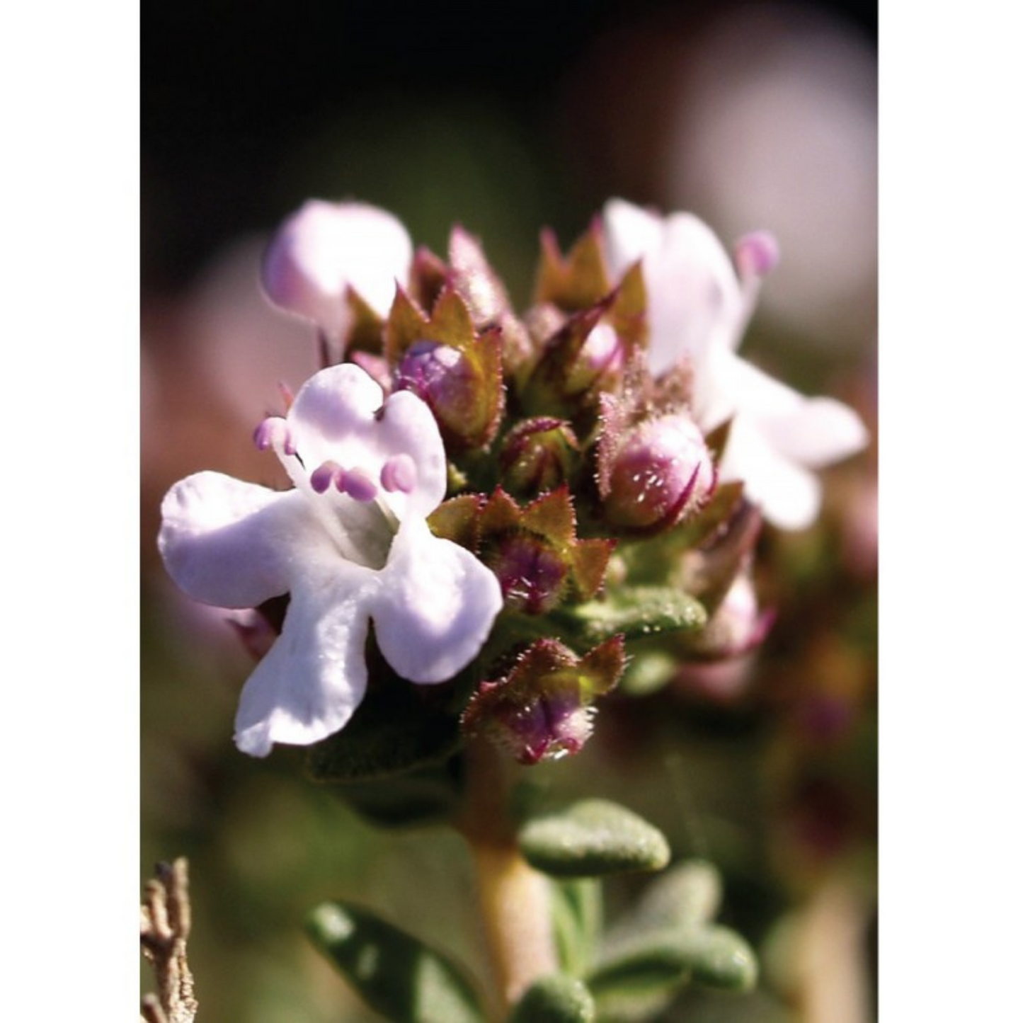Thyme is one of the most recognizable herbs in the garden, with small tightly packed aromatic leaves, that stem from a woody evergreen bush that flowers in purple or white. The garden thyme is an improved variation of the Wild Thyme from areas native to its mountainous habitat. It may be a companion planted along with Lavender - as they both favor the same conditions and compliment each other in the garden. Also known as Common Thyme, French Thyme, and Garden Thyme, this herb originates from the Spain and Mediterranean region.