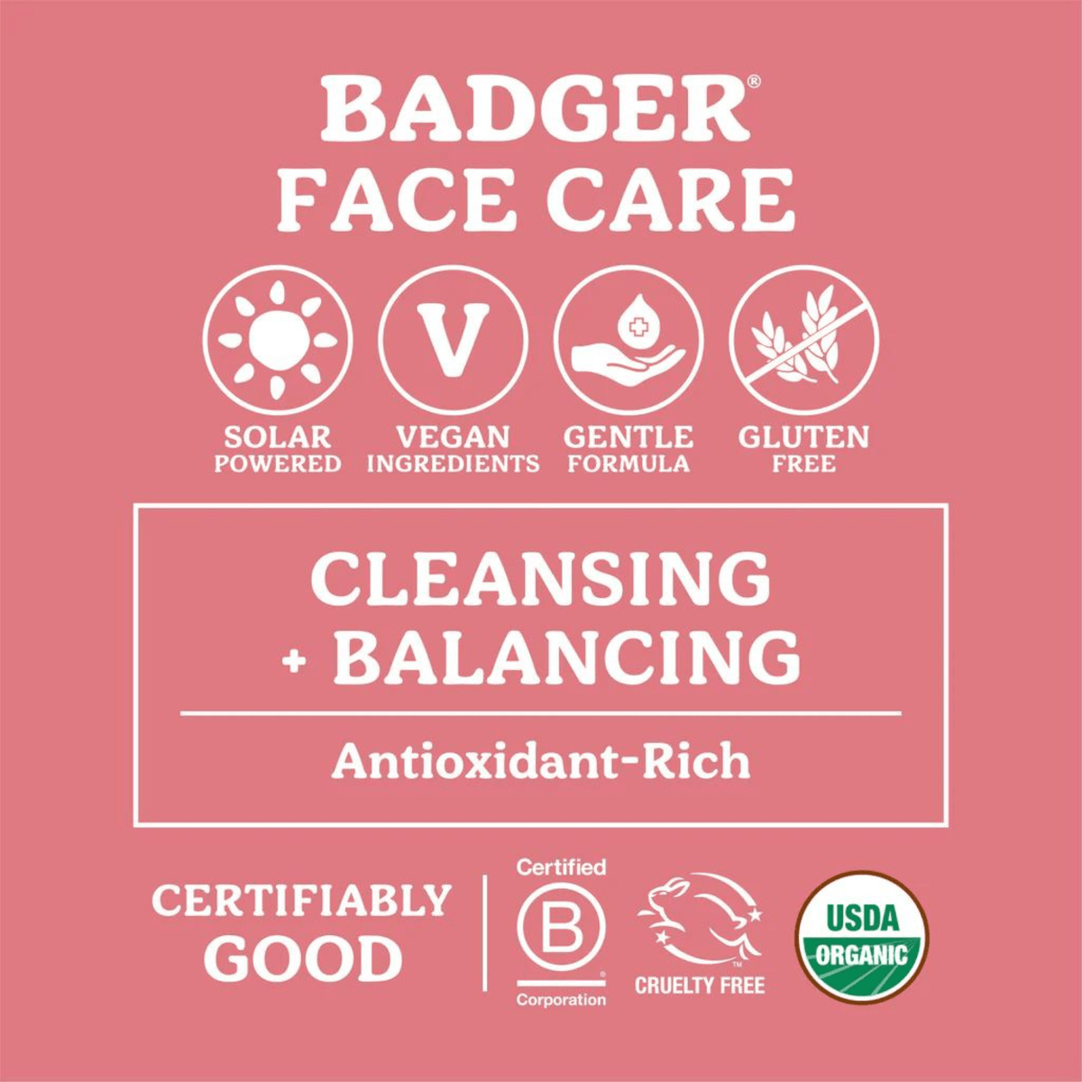 Massage cleansing oil onto a dry face in a circular motion until skin is covered. Then use a wet, warm washcloth to steam open pores and gently remove oil, dirt, and make-up. Follow with Badger Damascus Rose Face Oil for nourished skin that feels silky smooth.