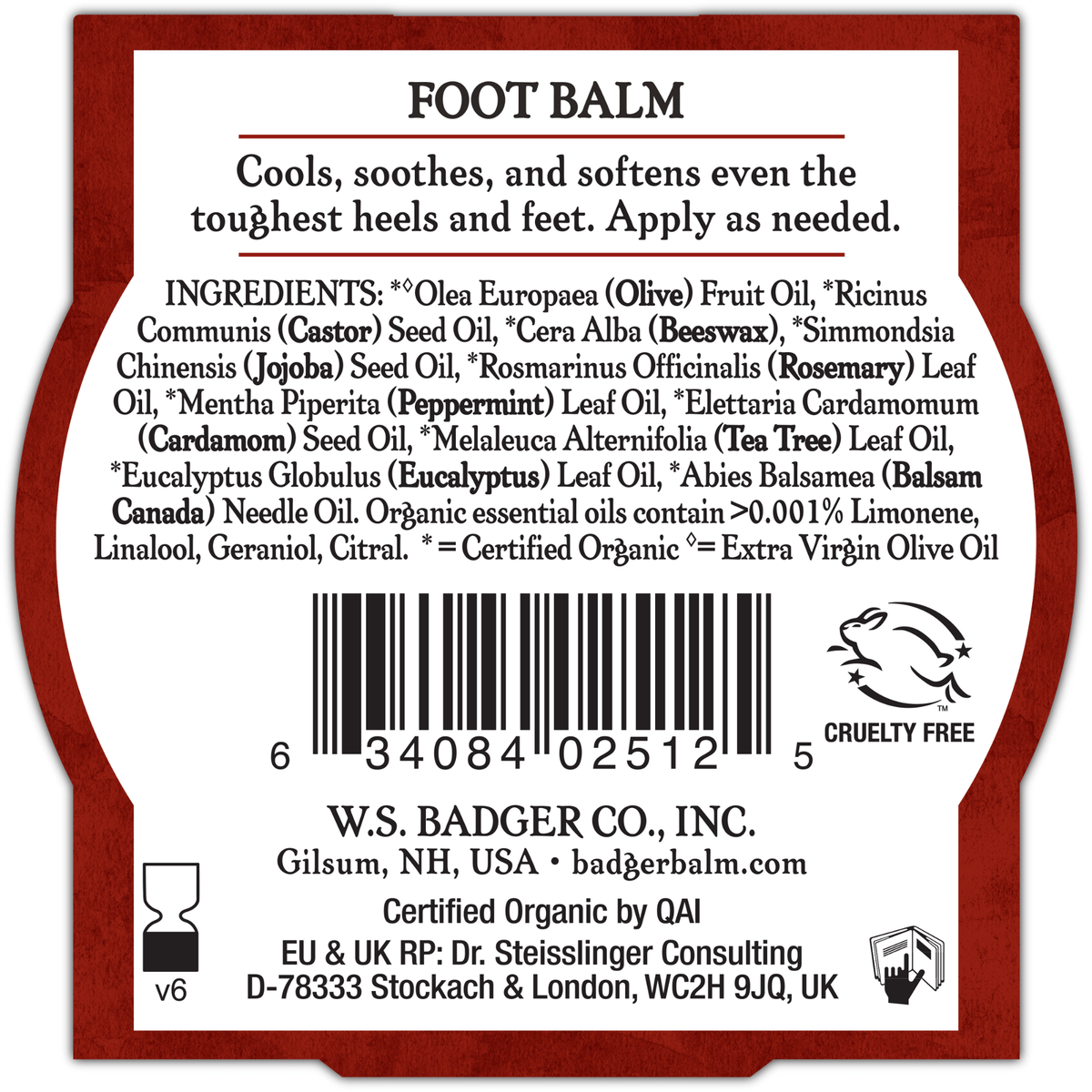 Sit back. Relax. Rub it in. Scents of Peppermint and Rosemary delight. Eucalyptus, Tea Tree, and Cardamom cleanse and heal. The oils and waxes in this illustrious Foot Balm soothe and soften the dry parts and revive the tired parts. Essential oils have a known anti-bacterial effect yet they are safe and wonderfully fragrant for your feet. This is a good thing. And foot rubbing stimulates reflex zones.
