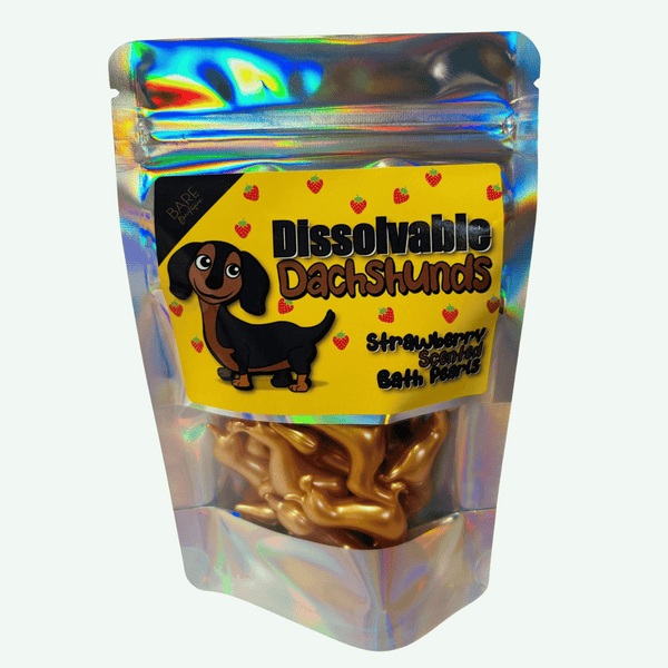 Take a trip back in time with the Dachshund Strawberry Bath Pearls! Enjoy moisturized skin softer than a puppy ear surrounded by the sweet scent of strawberry. Add up to 2 bath pearls to your soak for an extra fun bath.