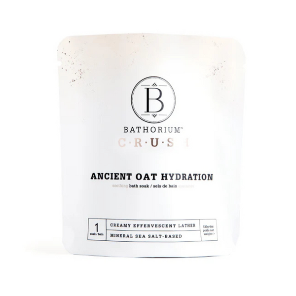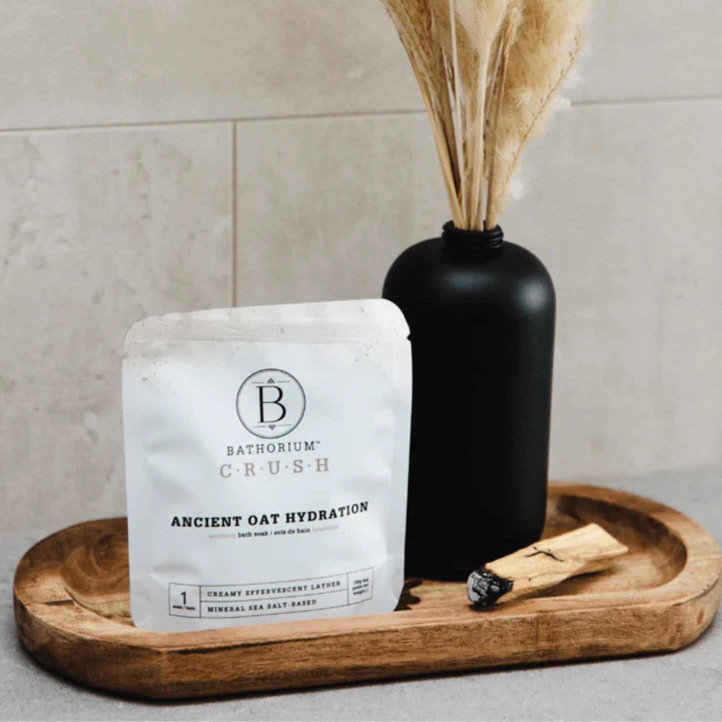 Bathorium's Crush Bath Soak comes by its name honestly: A crushed-up take on their bestselling Bath Bombs, it boasts the same good-for-you ingredients, from mineral-rich dead sea salt and detoxifying kaolin clay to skin-softening plant butters and hydrating oils. Effervescent and creamy, Crush melts into the bath water—and your skin—leaving a Cappuccino-esque crema on the surface.