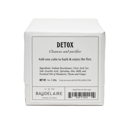 With each bubble and fizz, you can feel the stress of the days melt away. Each cube is handmade from all-natural ingredients and contains a unique blend of herbs and essential oils specific to its purpose. Packed with spirulina and essential oils of thyme and ginger, this purifying formula helps detoxify the body and soul. And if you still want your glass of wine in the tub with this DETOX, we won't judge.