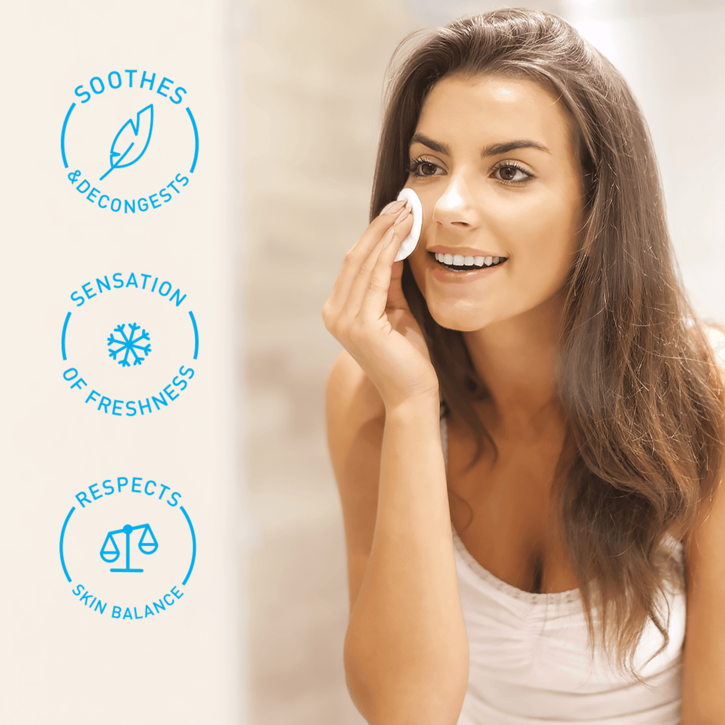 Soak a cotton pad, cleanse the skin and remove makeup from face and eyes, no need to rinse afterwards! Can be used daily morning and/or evening.