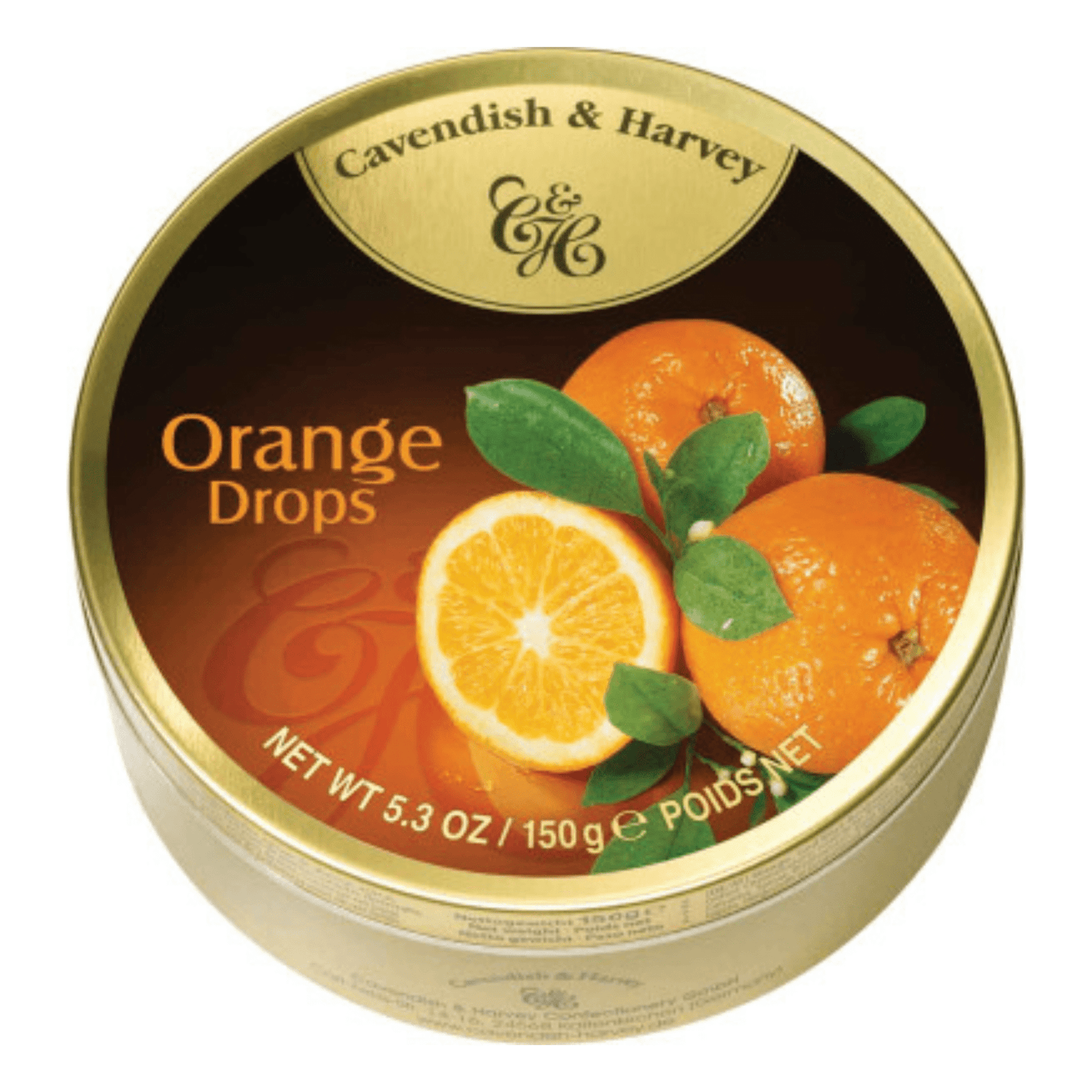 Like the memory of a summer orange grove somewhere far away. Savor the mouth-watering taste of sun-ripened oranges. These juicy orange drops, made with real fruit juice, are dusted with icing sugar and sealed in a premium gold tin for the highest quality freshness.