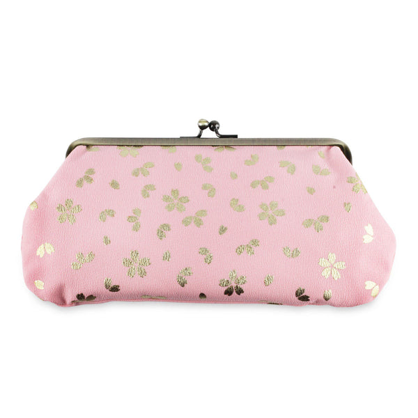 Inspired by vintage silk kimonos, the Pink + Gold Kimono Clutch Bag is charming enough to be used as a wallet or cosmetics case! Handmade by skilled artisans in Japan. The clasp closure keeps your goodies safe. Dimensions: 8.5 x 4 inches.