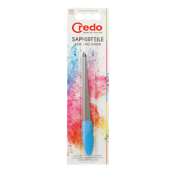 The 6" Sapphire Nail File from Credo helps beautifully shape your nails. FEATURES:- Has a coarse and a smooth side- Colorful ergonomic handle. TIP: only file dry nails and only in one direction