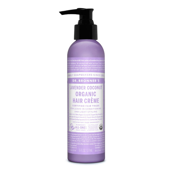 Dr. Bronner's Organic Hair Cr?mes provide light styling hold, make hair silky soft ? without any synthetic ingredients! Organic coconut oil gives hair shine and strength, organic jojoba oil imparts manageability and feel, and organic hemp oil moisturizes and softens hair. Use as part of an organic hair care routine, together with Dr. Bronner's Organic Pump Soaps and Organic Hair Rinse.Suggested uses: After showering, add styling and smoothness to your hair with one of Dr. Bronner's Organic Hair Cr?mes. Start with a small amount of Hair Cr?me in your hand and comb gently through hair ? with a focus on the ends. Apply as much as you need to make your hair moisturized-smooth, with a lightly-styled look.