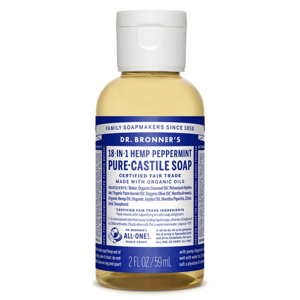 The most popular scent ? with a peppermint burst so pure it tingles! Scented with organic peppermint oil to cool skin, clear sinuses and sharpen mind. Dr. Bronner's Peppermint Pure-Castile Liquid Soap is concentrated, biodegradable, versatile and effective. Made with organic and certified fair trade ingredients, packaged in a 100% post-consumer recycled bottle. All-One!Suggested uses: Dr. Bronner's 18-in-1 Pure-Castile Soaps are good for just about any cleaning task. Face, body, hair ? food, dishes, laundry, mopping, pets ? clean your house and body with no synthetic preservatives, detergents or foaming agents. Remember to dilute!