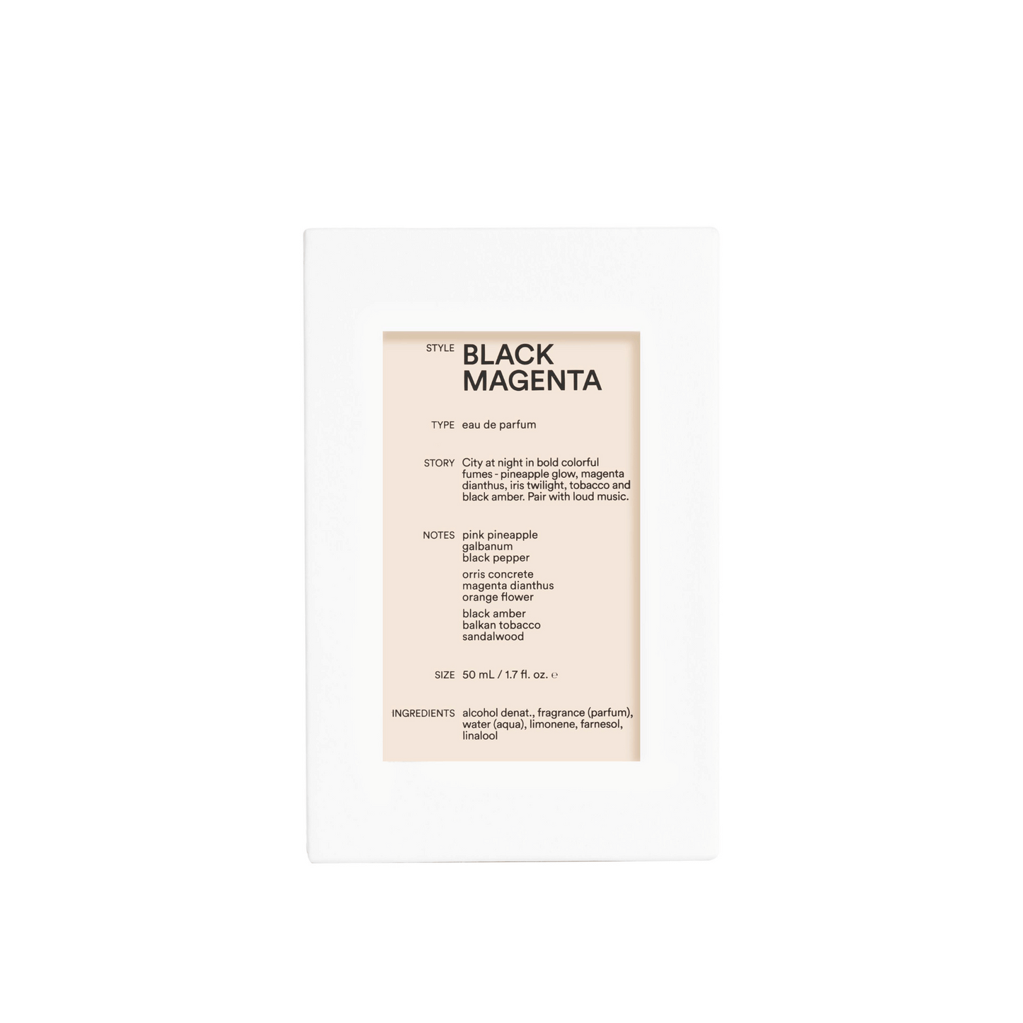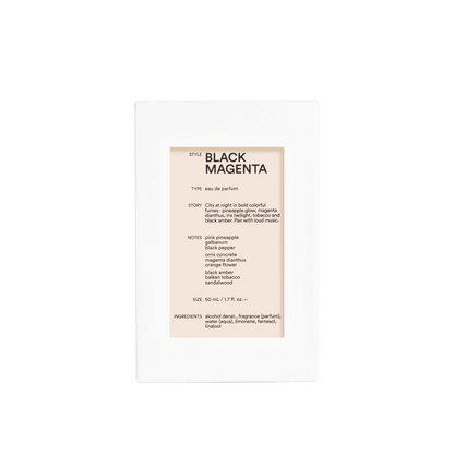 City at night in bold colorful fumes—pineapple glow, magenta dianthus, iris twilight, tobacco, and black amber. Pair with loud music.