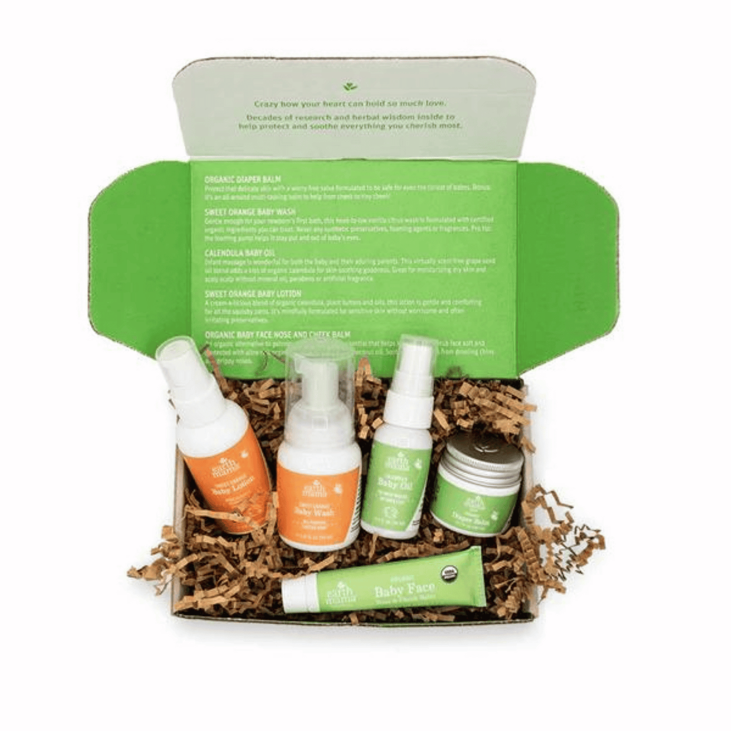 An organic gift that’s almost as sweet as a brand new baby. Because baby skin comes out wholesome — let’s keep it that way! 5-piece, cruelty-free, travel-size set. Cardboard packaging is 100% recyclable. This set include everything you need to take care of your precious little one, from top to toes!