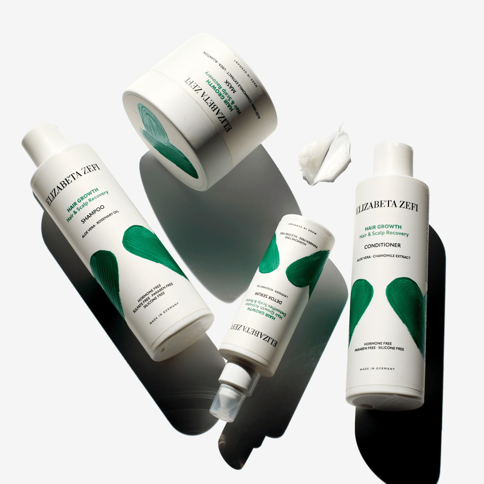 The Hair Growth line ensures a healthy scalp, stimulates hair growth and reduces hair loss. It also helps with thinning of the hair as a preventive measure.