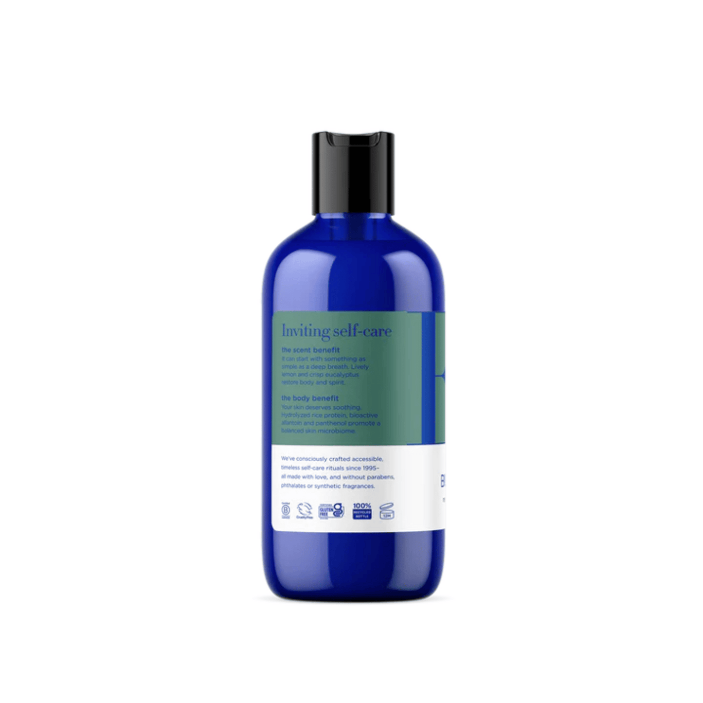Water, Sodium Coco-Sulfate, Cocamidopropyl Hydroxysultaine, Glycerin, Sodium Methyl Cocoyl Taurate, Caprylyl/Capryl Glucoside, Regenerating Complex [Centella Asiatic Flower/Leaf/Stem Extract, Carica Papaya (Papaya) Fruit Extract, Iris Florentina Root Extract], EO® Essential Oil Blend [Citrus Medica Limonum (Lemon)Peel Oil, Eucalyptus Globulus Leaf Oil, Citrus Aurantifolia (Lime) Leaf Oil, Pinus Sylvestris Leaf Oil, Gaultheria Procumbens (Wintergreen) Leaf Oil, Backhousia Citriodora Leaf Oil], Panthenol, Allantoin, Hydrolyzed Rice Protein, EO® Organic Herbal Blend [Organic Aloe Barbadensis Leaf Juice, Organic Chamomilla Recutita (Matricaria) Flower Extract, Organic Calendula Officinalis Flower Extract, Organic Camellia Sinensis Leaf Extract], Citric Acid, Sodium Phytate, Potassium Sorbate, Sodium Levulinate