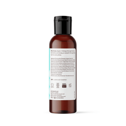 Apply one or two drops to your palm and rub hands together vigorously to warm oil, then work through damp or dry hair, focusing on the ends and working upward.