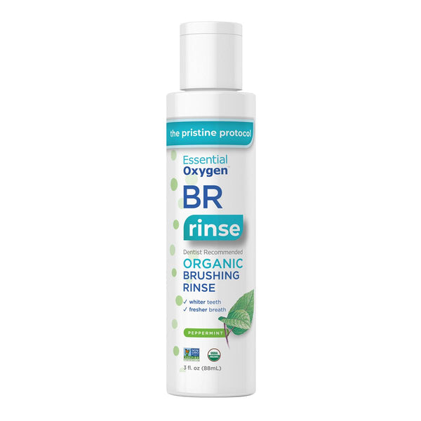 Essential Oxygen Brushing Rinse provides a better way to brush your teeth for a beautiful and luminous smile! This amazing rinse is part toothpaste and part mouthwash; it works for all oral issues including natural teeth whitening, gum pockets and receding gums, tooth sensitivity, bad breath, tartar, canker sores and toxic morning mouth. Each ingredient is high quality and all-natural.While we sleep at night our bodies are in cleanse cycle and our saliva doesn't circulate. Consequently, we wake up with a mouthful of bad oral bacteria and not the best breath. Rather than swallow this bacteria with your first drink of water, spit it out and swish with the rinse for 30 to 60 seconds while you do other morning activities. With the rinse still in your mouth, brush your teeth and tongue. Your mouth (and your immune system) will thank you!Free of: Sodium Lauryl Sulfate, Chlorine Bleach, Animal Testing, Pesticides, Fluoride, Glycerin, Alcohol