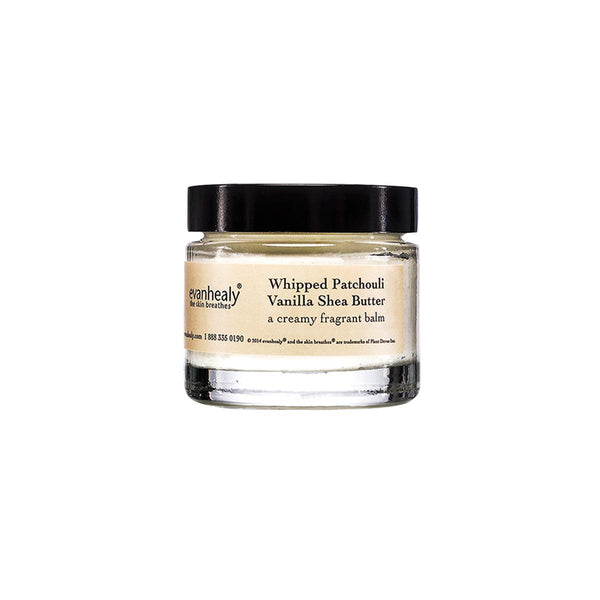 Fans of patchouli will love Evan Healy's Patchouli Vanilla Shea Butter, crafted with aged Indonesian patchouli to a luscious vanilla from Madagascar. Like a fine wine, patchouli ages well, and if left in a cool, dark space, will develop earthy and sweet, amberlike notes, growing richer, rounder and deeper over time. Patchouli, with its grounding and relaxing effect on the mind and body, is especially beneficial on dry and irritated skin.- Use daily for intensive treatment of dry, dehydrated, mature and/or sensitive skin.- Prepared by hand in small batches: over a period of four to six hours, nourishing and restorative oils are added to raw, unrefined shea butter as it gently and continuously whips.A finger-tip sized amount applied daily to clean skin regenerates and protects extremely dry and dehydrated skin, having a remarkable effect on wrinkles, softening and smoothing fine lines, wrinkles, all signs of stress held in our face and eye area. After a few days of consistent use skin appears noticeably improved.Rich in essential fatty acids, cinnamic acid, and vitamins C, E, and K, Whipped Shea Butter heals dry, sensitive skin conditions while providing maximum barrier protection, without a heavy feeling or clogging tiny dermal pores. It is especially effective when treating inflamed skin conditions such as eczema, rosacea, psoriasis, rashes, dry and burned skin.Whipped Shea Butter is a combination of luscious and nourishing oils: California- grown extra-virgin olive oil, calendula-infused sunflower oil, and a Madagascar vanilla- infused coconut oil. It also contains a proprietary blend of Flower Essences to promote healthy skin and well being.