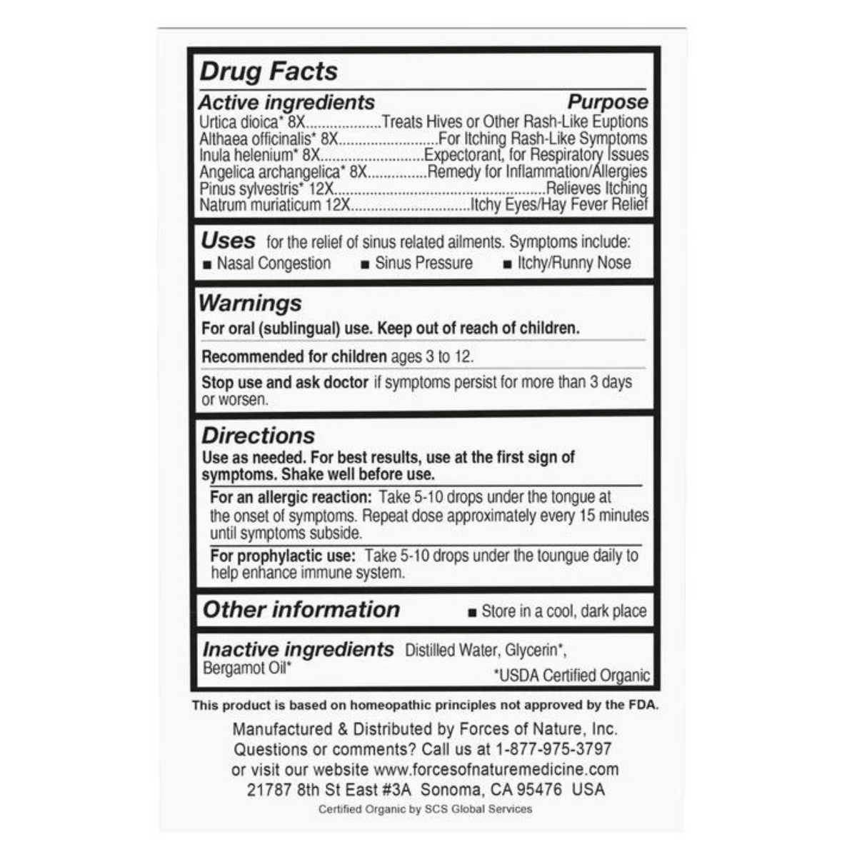 Forces of Nature's Allergy Kids medicine is the world’s first and only certified organic allergy medicine for children. It is safe, effective, and one of a kind, composed of certified organic homeopathic elecampane, marshmallow, angelica, and stinging nettle. It works with your child’s immune system, naturally, to desensitize their system to common allergens and reverse symptoms.