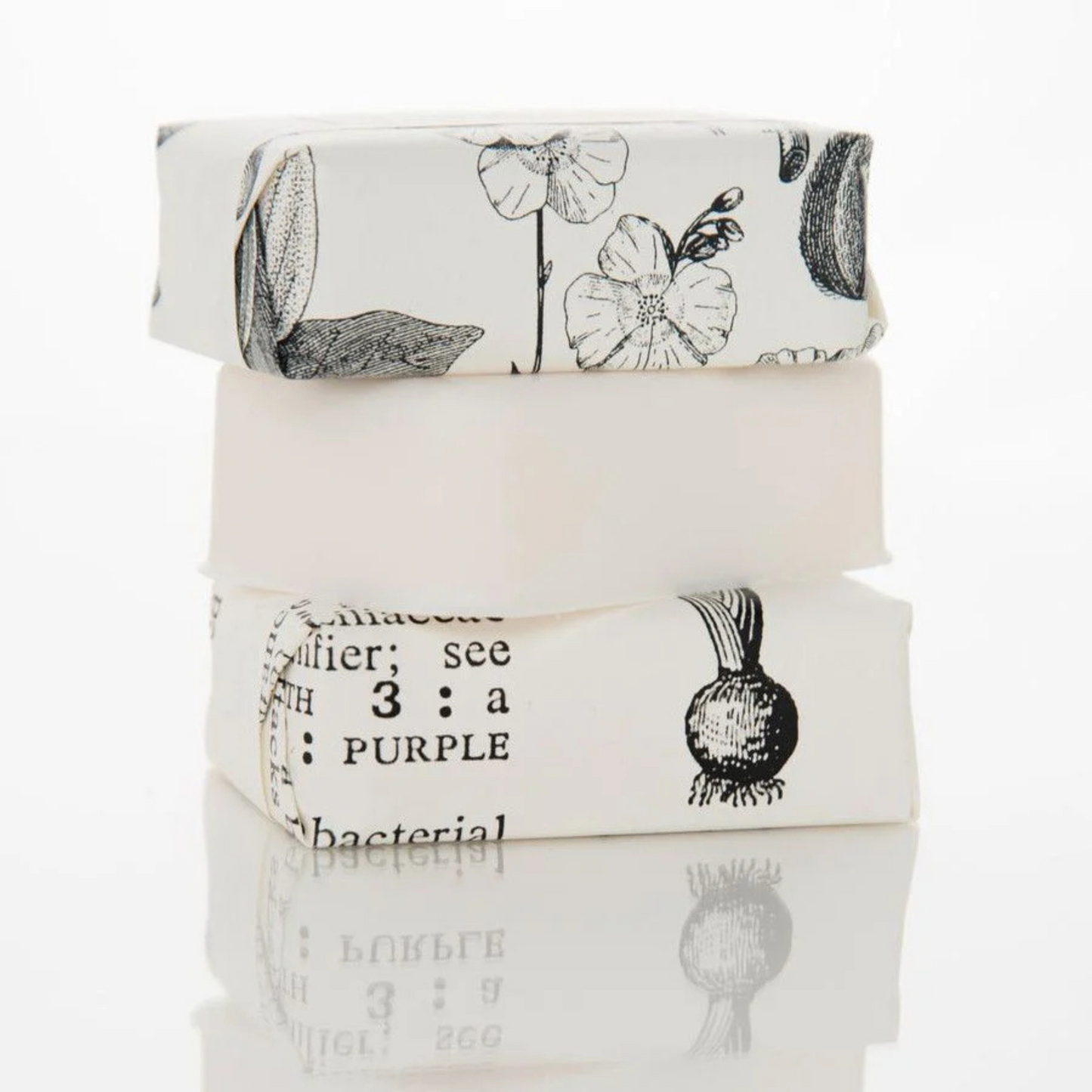 Superfatted to be extra moisturizing and skin softening, these shea butter bath bars are long lasting and luxurious. This handcrafted soap is made in small batches of saponified oils of coconut, RSPO-certified palm, and shea butter. Scented with their own proprietary blend of phthalate free fragrance oils and essential oils. Each bar is also wrapped in paper featuring their signature botanical and vintage illustrations.