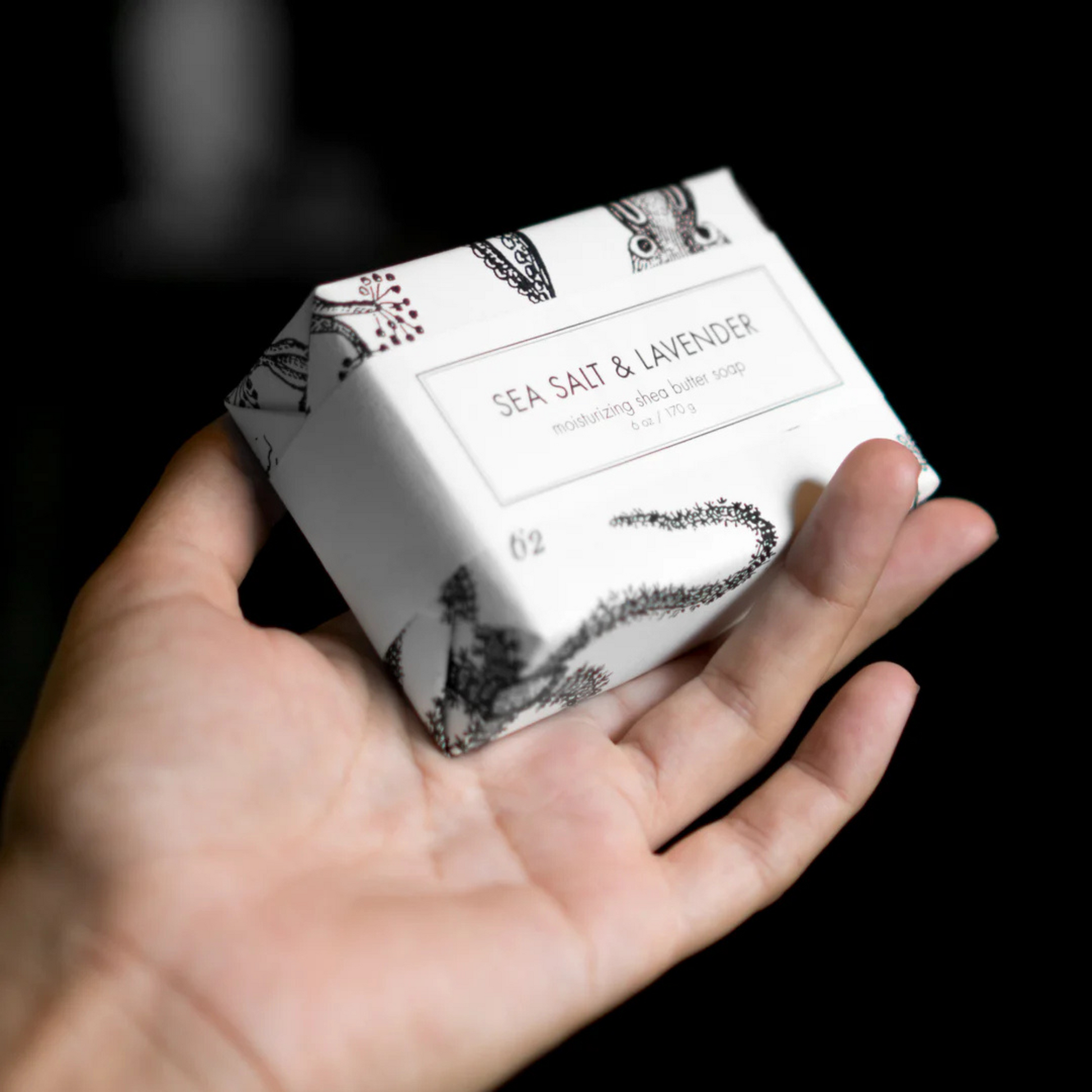 Superfatted to be extra moisturizing and skin softening, these shea butter bath bars are long lasting and luxurious. This handcrafted soap is made in small batches of saponified oils of coconut, RSPO-certified palm, and shea butter. Scented with their own proprietary blend of phthalate free fragrance oils and essential oils. Each bar is also wrapped in paper featuring their signature botanical and vintage illustrations.