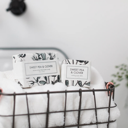 Superfatted to be extra moisturizing and skin softening, these shea butter bath bars are long lasting and luxurious. This handcrafted soap is made in small batches of saponified oils of coconut, RSPO-certified palm, and shea butter. Scented with their own proprietary blend of phthalate free fragrance oils and essential oils. Each bar is also wrapped in paper featuring their signature botanical and vintage illustrations.