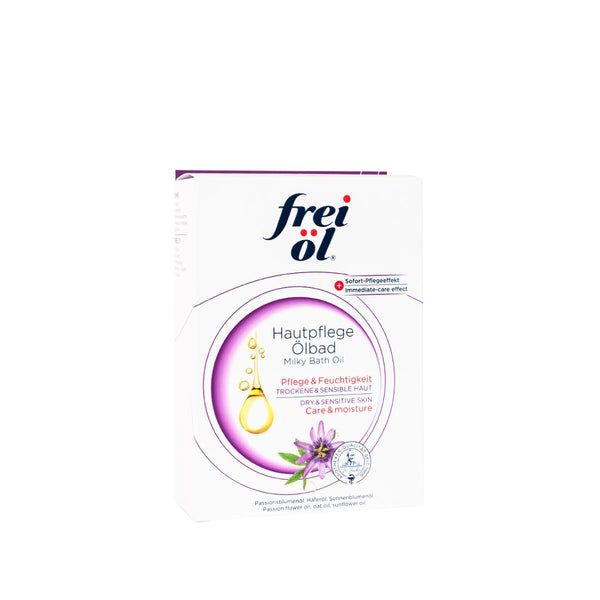 The frei öl® Milky Bath Oil contains a high proportion of the essential fatty acids important for the skin (vitamin F) in the form of highly valuable plant-based oils. Soothing oil components supplement the skin’s natural hydro lipid layer. The oil makes it noticeably soft to the touch, supple and helps it to retain its moisture. The frei öl® Milky Bath Oil envelops the skin with an extremely thin, nurturing protective film. It relaxes and soothes even extremely dry and sensitive skin. With their fine and soothing balance, the wonderful scents of jasmine, vanilla and raspberry ensure an unparalleled body sensation.