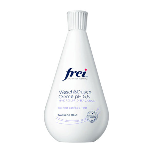 Frei Wash & Shower gel pH 5.5 liquid soap is particularly suitable for sensitive skin. The skin is protected by moisturizing ingredients in the formula, which keep it from drying out. The cream is equipped with an ideal pH. As an effect, the natural acid mantle of the skin is preserved and supported. The agent is free of paraffins, silicones and dyes, making it a very mild formulation. The sensitivity of the cream has been confirmed in studies.