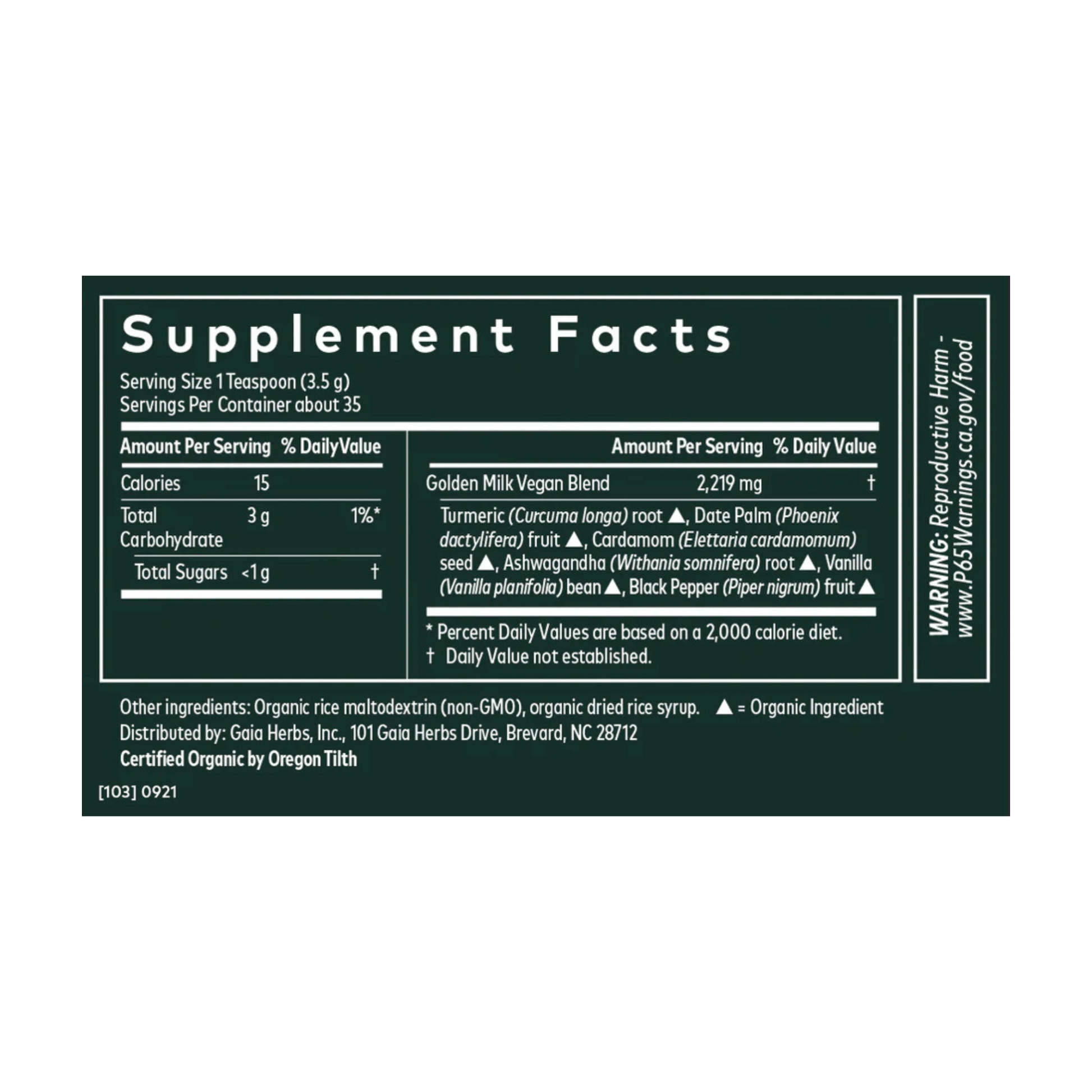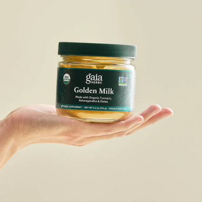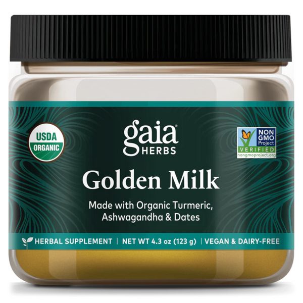 Gaia's Golden Milk is an Ayurvedic cup of calm to help support both body and mind. Their formula is based on the traditional stress-supporting recipe that has been revered for centuries. Formulated with Turmeric, Ashwagandha, Dates, Cardamom, and Vanilla, it also includes black pepper, which supports the absorption of Turmeric’s beneficial curcuminoid compounds. Gaia makes it easy to supplement your daily diet by adding this delicious blend to dairy or non-dairy milks or mix into coffee. Sip your way to serenity by simply adding this convenient vegan powder into the warm beverage of your choice to supplement your diet.