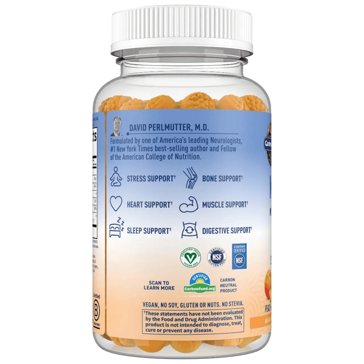 Get the most out of your day with Dr. Formulated peach flavor magnesium gummies! Studies show that supplementing a balanced diet with bioavailable magnesium can help reduce stress‚ improve sleep and support overall heart‚ muscle and bone health†. Each delicious 4-gummy serving contains less than 1 gram sugar and beneficial prebiotics for feeding probiotic cultures including clinically studied Bacillus subtilis DE111® — making it easier to fill any gaps in nutrition you may be missing from food alone. Enjoy all the goodness of Dr. Formulated Magnesium Gummies with no worries! Our yummy peach-flavored treats are Non-GMO Project Verified‚ NSF Certified Gluten Free‚ NSF Contents Certified and Star K Kosher - so you can get your daily magnesium intake without having to compromise on quality or taste.