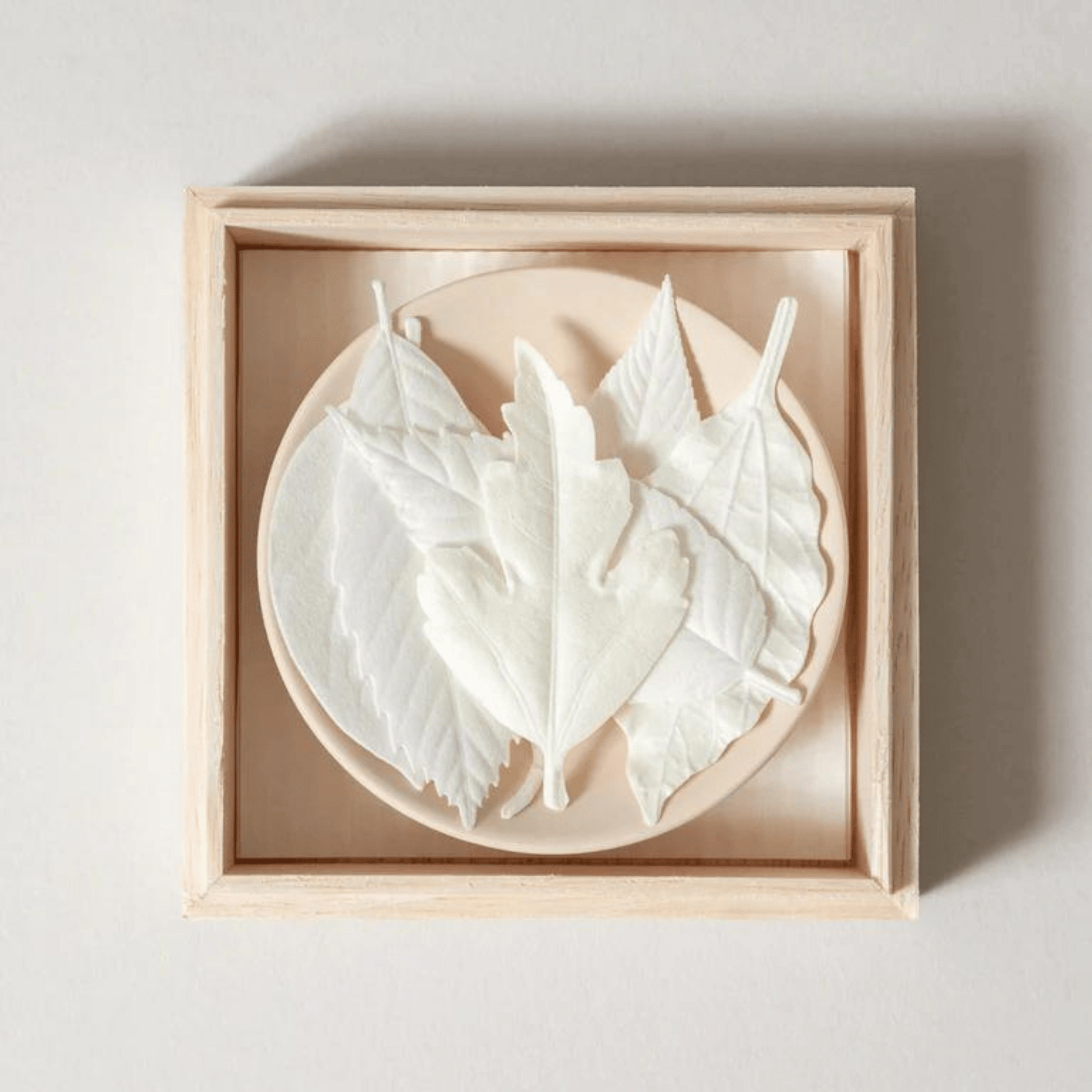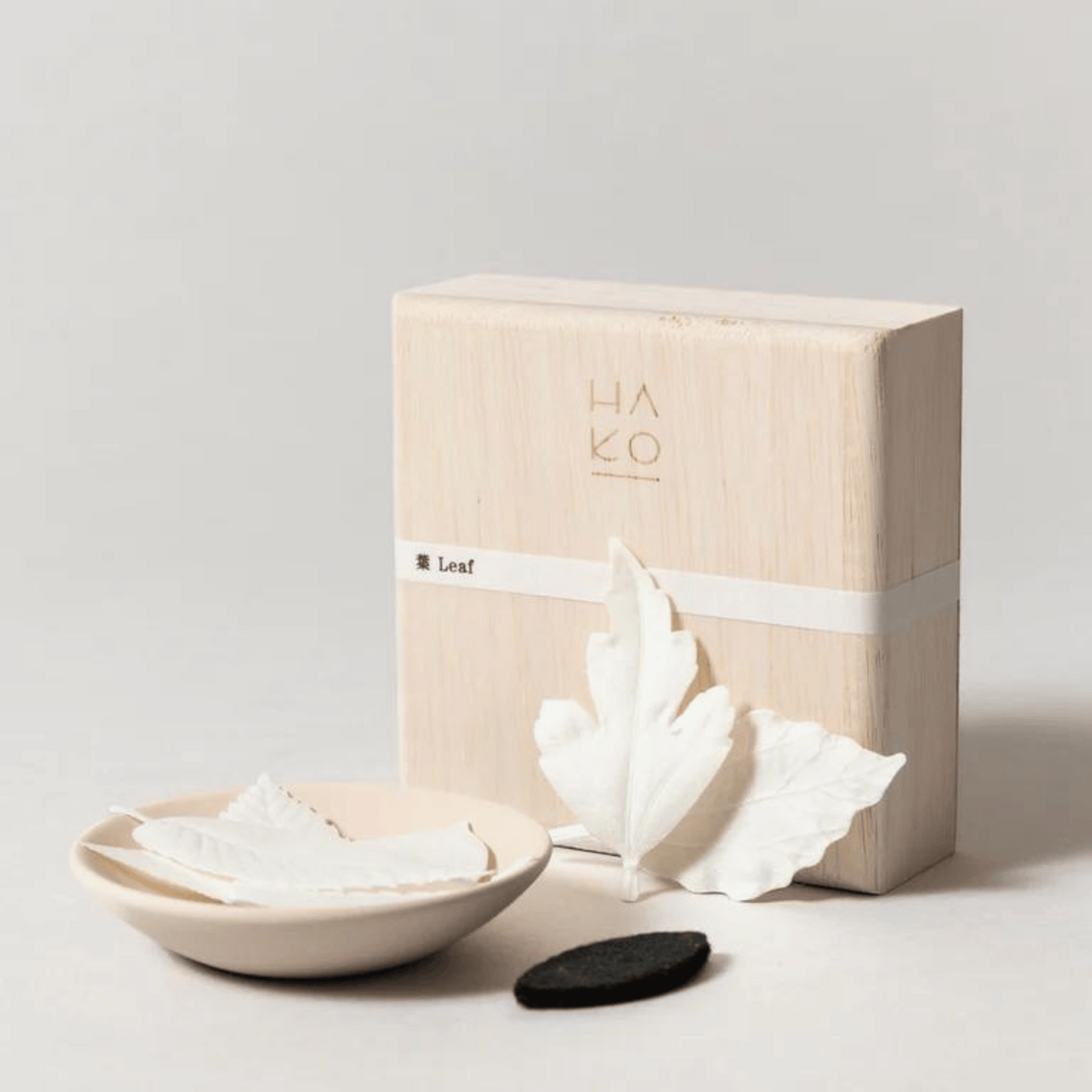 Enjoy a curated sampling of HA KO incense in a gift-worthy box. This special wooden box set comes with six individual leaves of HA KO Paper Incense and includes a felt mat and burning dish so you can enjoy them right away. Each leaf can be used as subtle potpourri, giving off fragrance for up to three months, or as incense that burns for approximately seven minutes while cleansing and deodorizing an area.