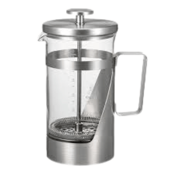 The Harior 7 is a classic coffee and tea press with modern style. This press features sleek stainless steel and Hario's signature Heatproof Glass. The glass is marked with milliliter marking, which makes following recipes a breeze. The glass portion of the press can all be removed for easy cleaning. This press holds 600 ml or about 20 fl oz.