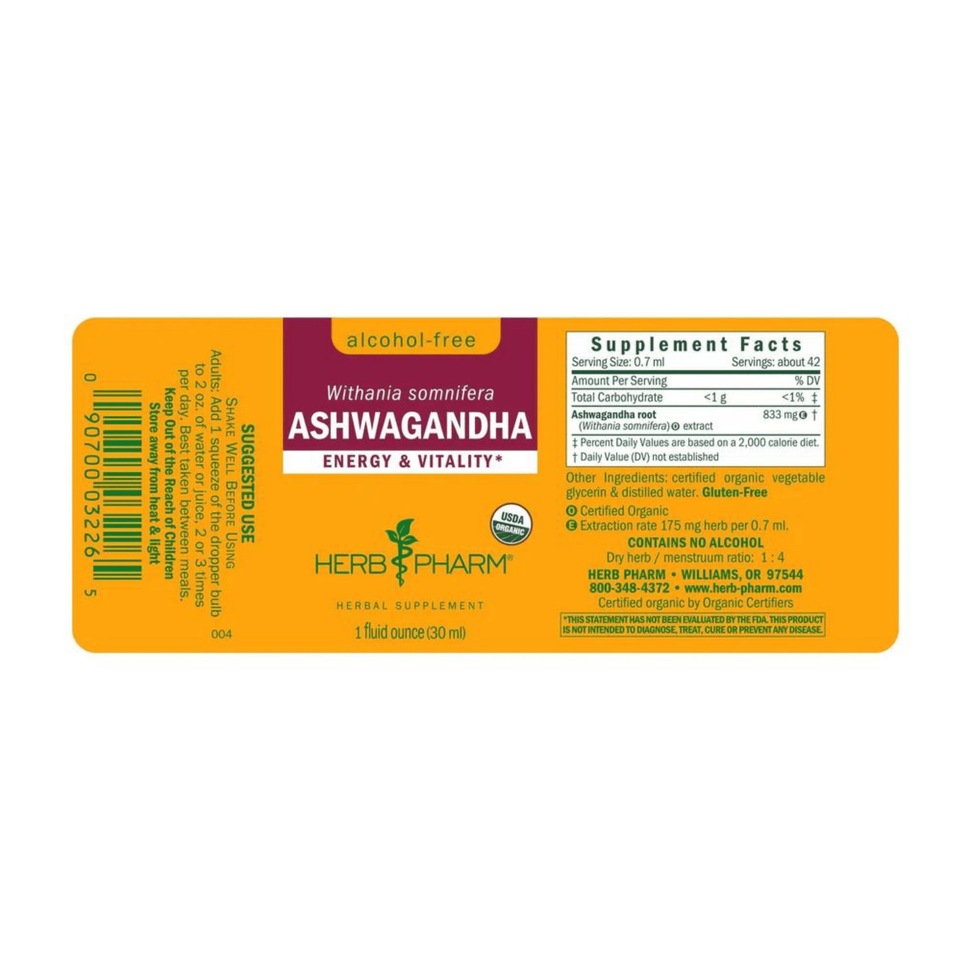 Ashwagandha is a calming adaptogen to help you handle day-to-day stressors. This tincture is a traditional support for calm energy. Herb Pharm prepares their Ashwagandha glycerite from the root of Certified Organic Withania somnifera plants. The root is harvested at the peak of readiness, and carefully shade-dried to retain its full color and aroma. Then it is thoroughly extracted. The herb is revered in Ayurvedic traditions. Ashwagandha, Alcohol-Free tastes slightly bitter, earthy, aromatic and sweet.
