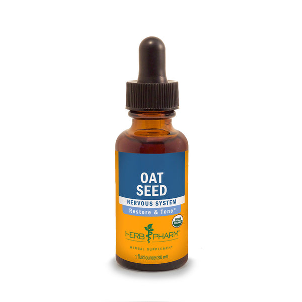 Herb Pharm prepares their Oat Seed Extract from the fresh (undried) seed of Avena Sativa, which is certified organically grown on their own farm without the use of chemical fertilizers, pesticides or herbicides. To assure optimal extraction of Oat's bioactive compounds, the seeds are hand-harvested only in their semi-mature (milky) stage and are then taken directly to their labratory and promptly extracted while still fresh and succulent. The Oat seed is never fumigated or irradiated.