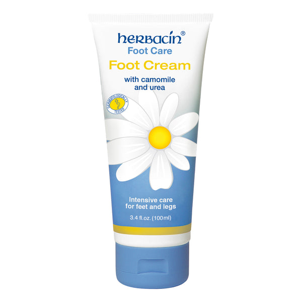 Herbacin's nourishing Foot Cream is the ultimate moisturizer for sensitive and highly stressed feet. Natural oils, chamomile flower extract, allantoin, and panthenol soothe and regenerate the skin. Antioxidants Carnosine and Vitamin E bind free radicals and strengthen the cell membrane. Carnosine also reduces the reaction between sugar molecules and collagen & elastin fibers, which not only delays the aging of the skin but also enhances its elasticity. Use daily to prevent corns, calluses and cracks.- Chamomile from controlled organic farming- Natural avocado and almond oil- Paraben and mineral oil free- No PEG's- No animal derived ingredients- Free from artificial colors- Recommended for diabetics