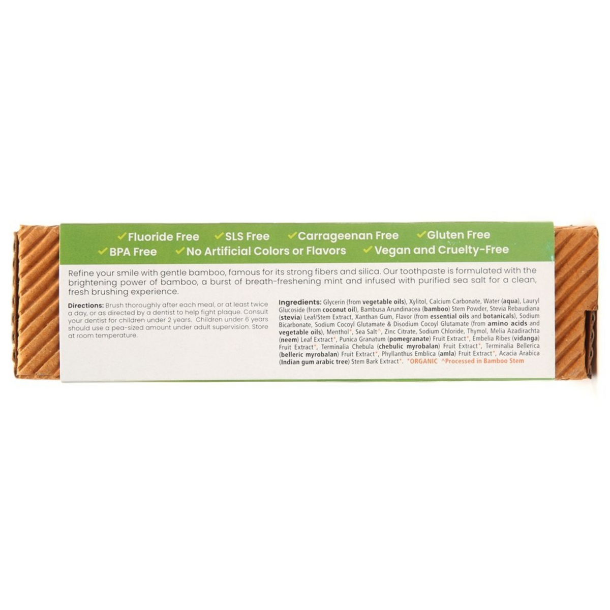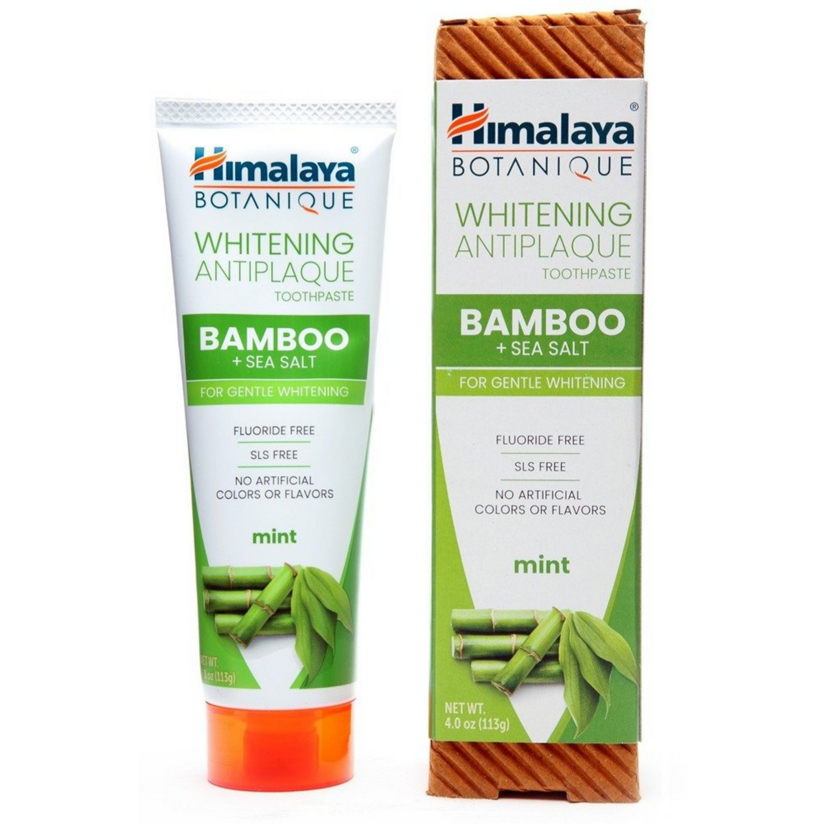 Himalaya Bamboo and Sea Salt toothpaste is a clean, fluoride-free toothpaste with no unwanted extras, yet it still tastes and foams wonderfully. Cleansing fibers from Bamboo Stem Powder leaves you with clean teeth and a bright smile. Purified, soothing Sea Salt freshens your breath and comforts your mouth. A rich touch of Coconut Oil and mint-fresh flavor bring you pure brushing enjoyment.