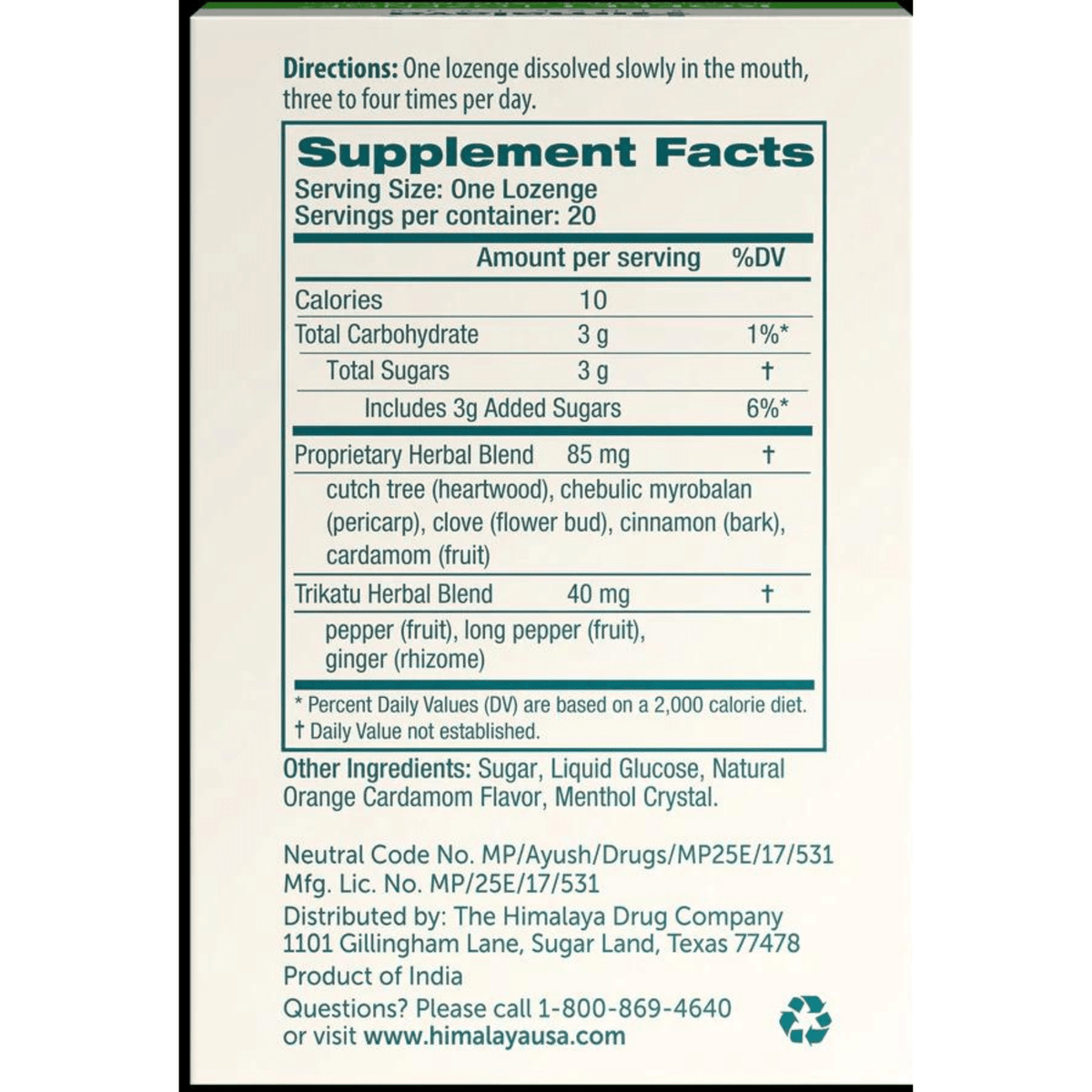 Serving Size: One Lozenge