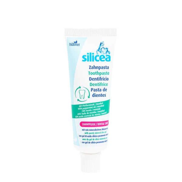Hübner Original Silicea® toothpaste with peppermint oil maintains the health of the teeth and gums. This toothpaste cleans deeply, has a refreshing flavour, provides tried and tested care of the teeth and the oral cavity and is also suitable for the care of sensitive teeth and dental necks.