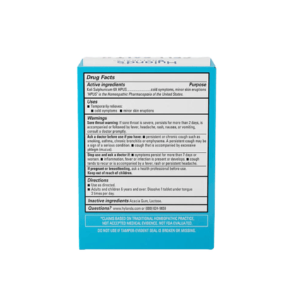 Active Ingredients: Kali Sulphuricum 6X HPUS: colds, skin eruptions.