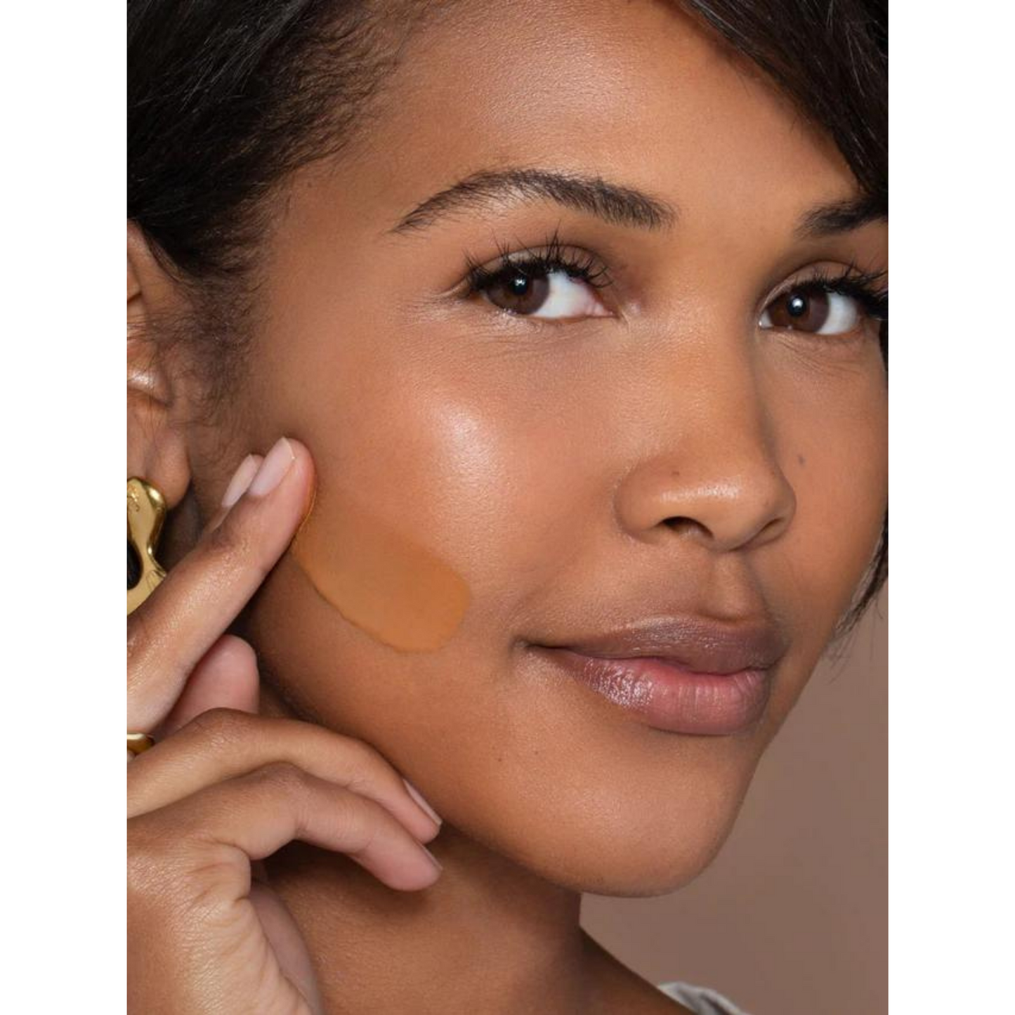 This weightless, medium-coverage foundation has a natural finish—now featuring active levels of smoothing Niacinamide and soothing Allantoin. It is boosted with skincare actives for a brighter, smoother, and more healthy-looking complexion—even after you take it off. This silky, breathable formula melts in and moves with you, seamlessly blending and blurring for skin that looks like skin. Potent skincare actives Niacinamide and Allantoin visibly improve skin with every wear, minimizing the look of pores, lines, redness, and uneven tone instantly and over time. Skin is left looking real and radiant—like you, just more polished.