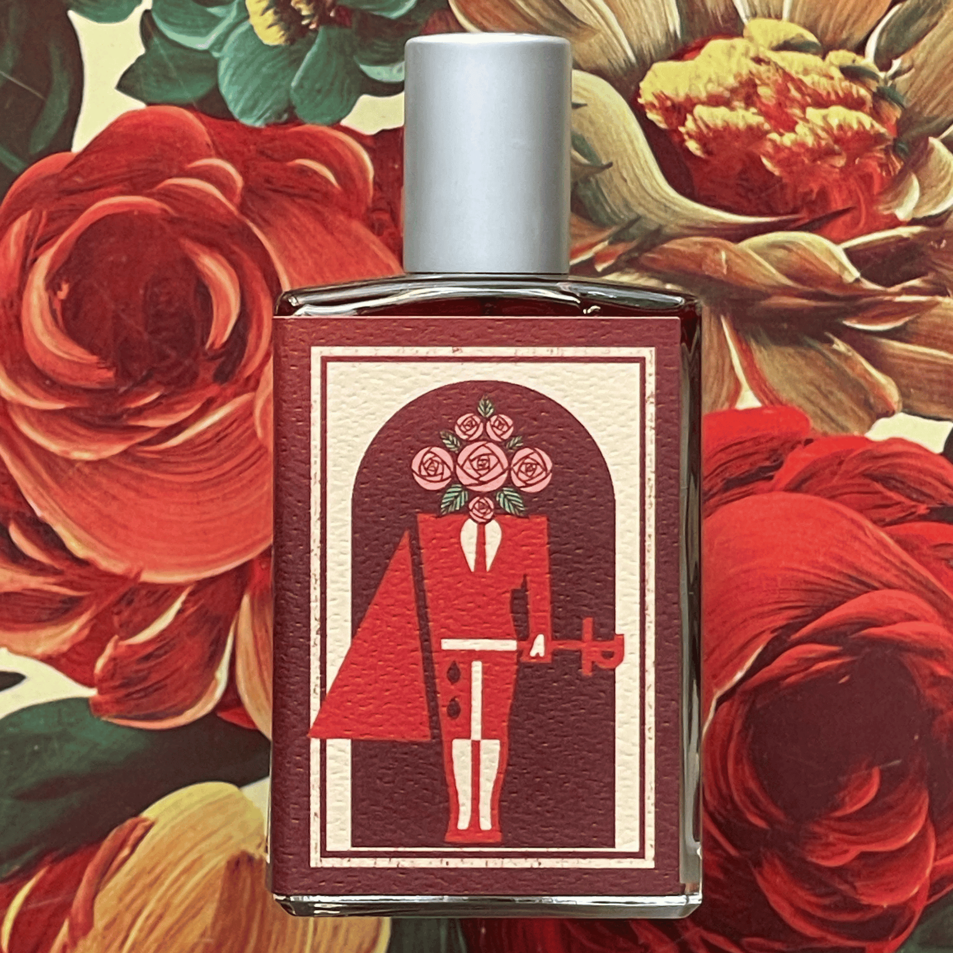 Geranium, Spanish Rose, Patchouli, Black Musk, Tobacco, Sandalwood, Bull’s Blood