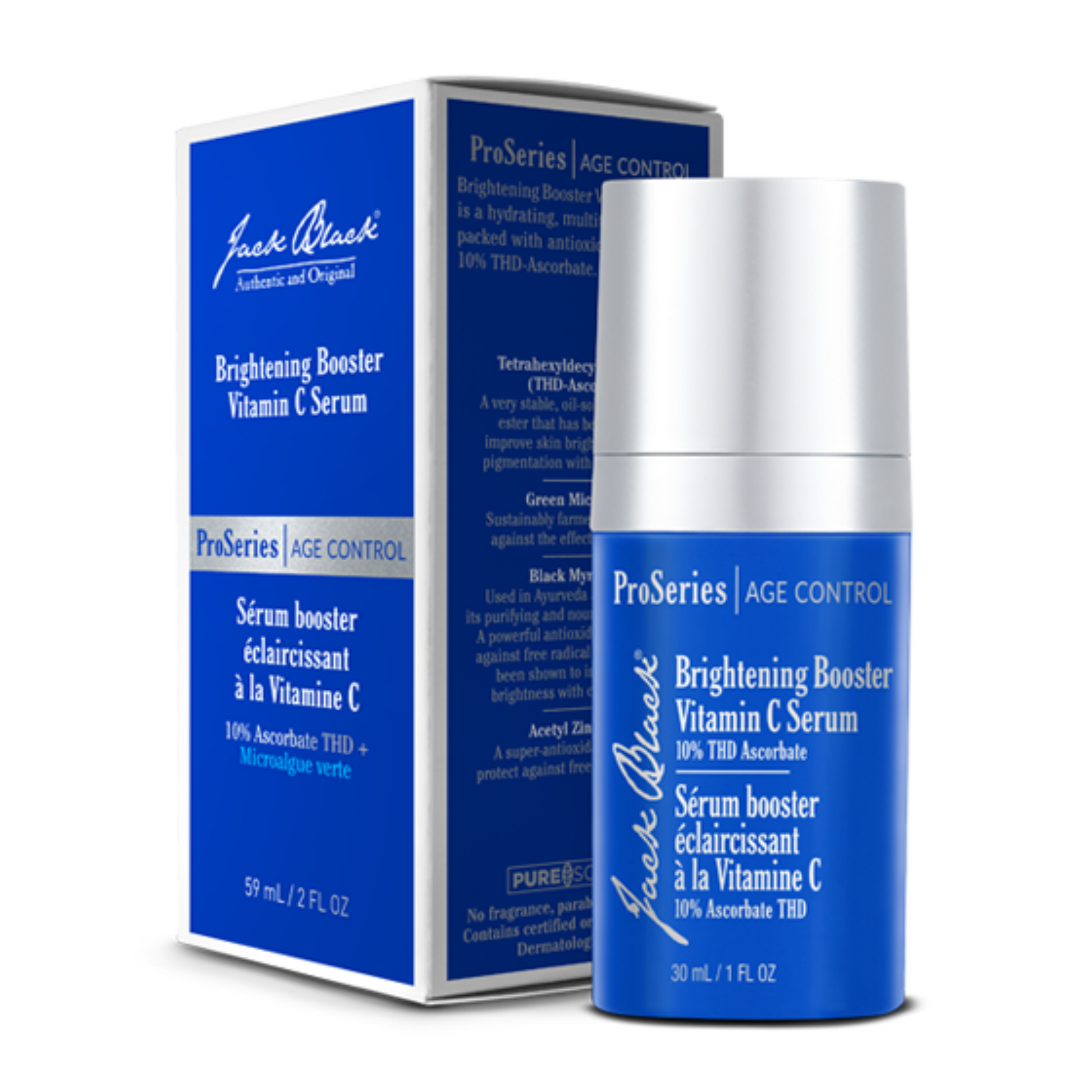 The Jack Black Age Control Brightening Booster Vitamin C Serum is a hydrating, multitasking formula packed with antioxidants, including 10% THD Ascorbate. This serum is part of the ProSeries Age Control Collection–designed to help achieve and maintain healthy skin and reduce the appearance of visible signs of aging.