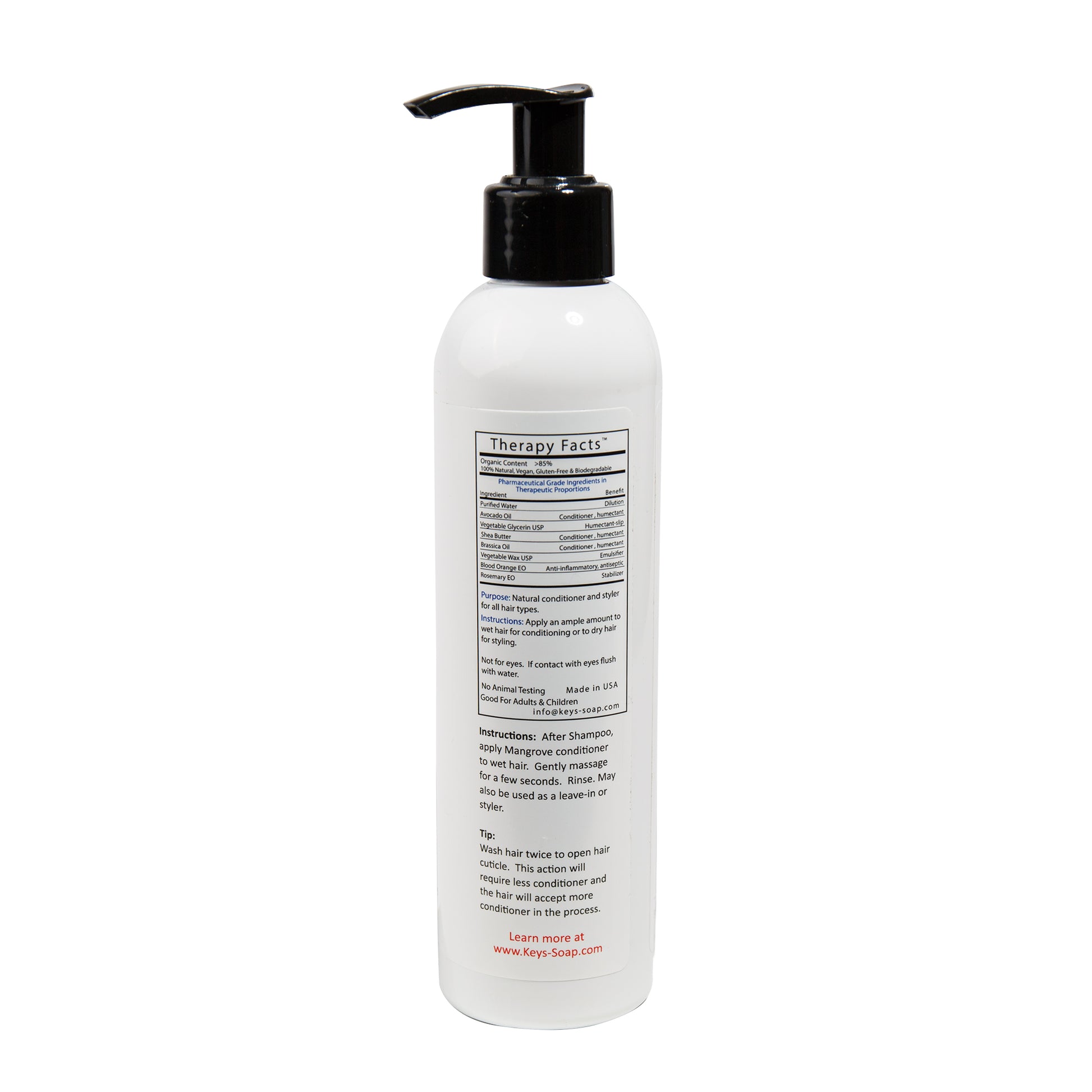 More than 95% of all hair conditioners available over the counter or from salons contain a form of silicone. Many contain multiple forms of the chemical to coat and encase the hair shaft. The results are a high shine that leaves hair very organized. The problem with silicones is that they coat the scalp and pores as equally as they do the hair. Many dermatologists believe that silicones along with sulfates are a primary cause of premature baldness in men and women. Keys Care searched the world for a natural conditioner ingredient that would operate like silicone, but without the negative properties. In fact, one of their criteria was that it had to help condition the scalp as well. What they discovered was a natural conditioner called Brassica. It resembles pure natural coconut, but without the stripping characteristics of coconut. It has a low acidity level so it mirrors the skin and scalp condition. Mangrove Conditioner contains Brassica and other natural oils in a concentrated conditioning cream.