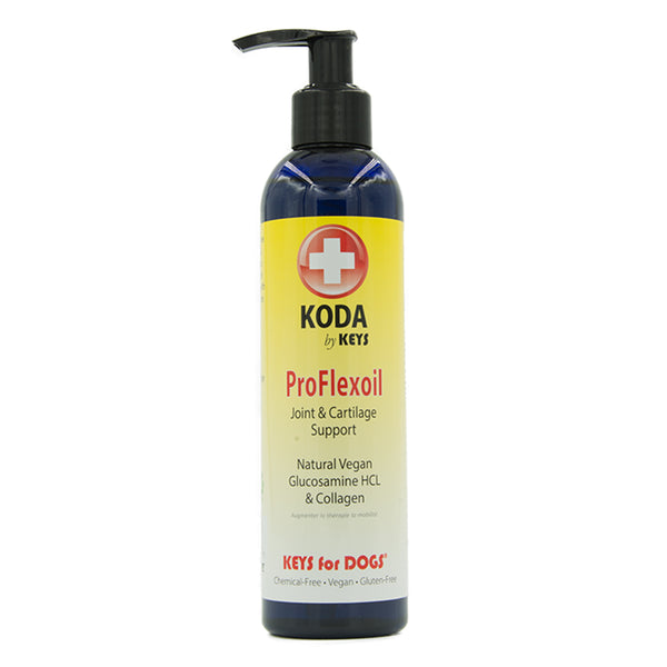 ProFlexoil is a multifaceted vegan joint compound for dogs of all ages whose joint stress comes from both external and internal forces. It is a Cox-2 enzyme inhibitor with ingredients including Glucosamine HCL (not sulfate) and Collagen.Keys Care's glucosamine collagen formulation is designed to build cushion in joints and reduce pain associated with osteo disorders. It is suspended in pharmaceutical grade oils that are designed to maximize assimilation of the Glucosamine and Collagen.- Add to food- Aids mobility- Promotes flexibility- Anti-inflammatory- Helps rebuild cartilage- Tendon support- Arthritis relief- Omega 3,6,9's- Not from Shellfish- No NSAIDs