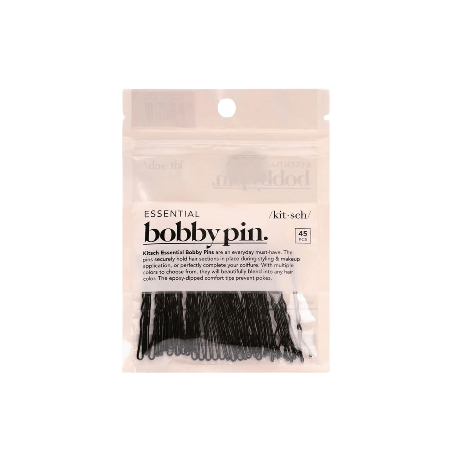 45 count pack of Kitsch Pro Essential Bobby Pins. Available in a variety of colors to perfectly match your hair. Epoxy-dipped comfort tips to minimize pokes. An every day must-have that securely holds hair in all applications.